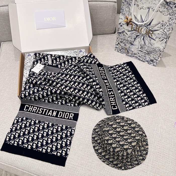 ディオールレディースネイビーマフラーc1765