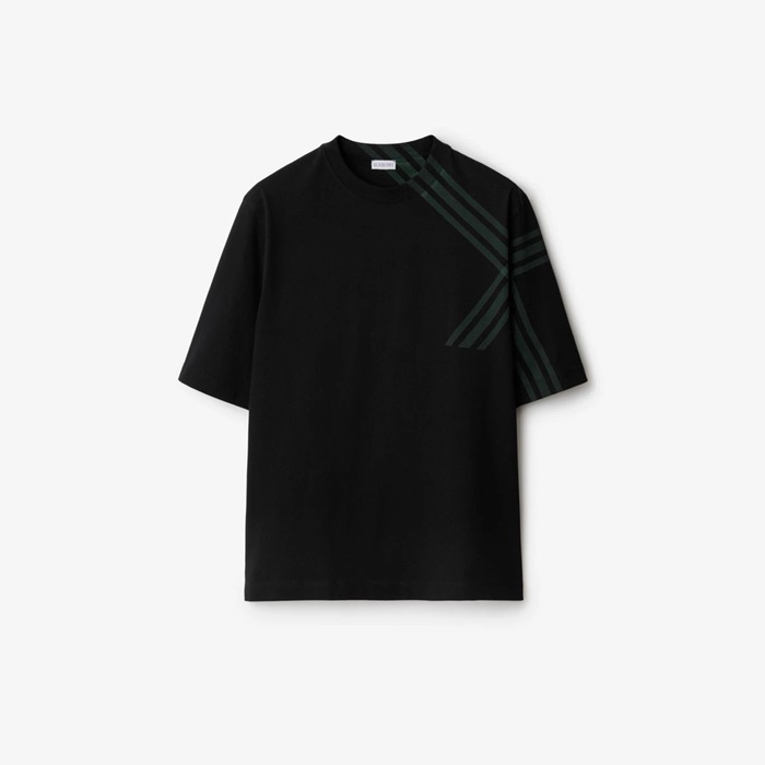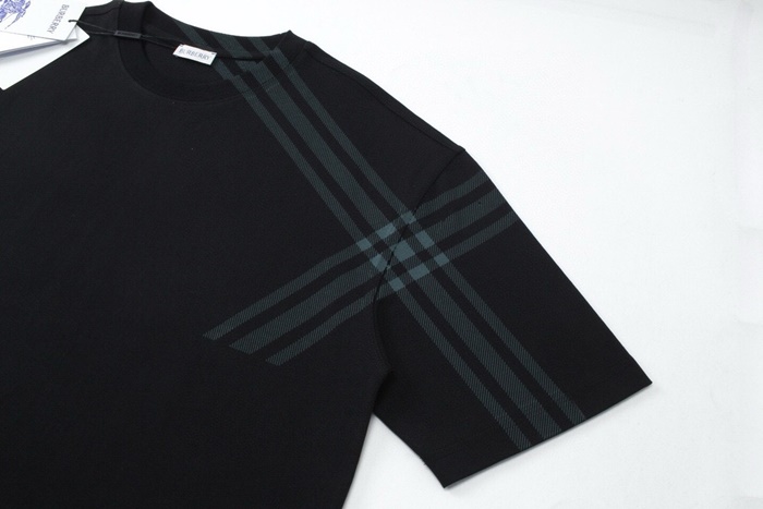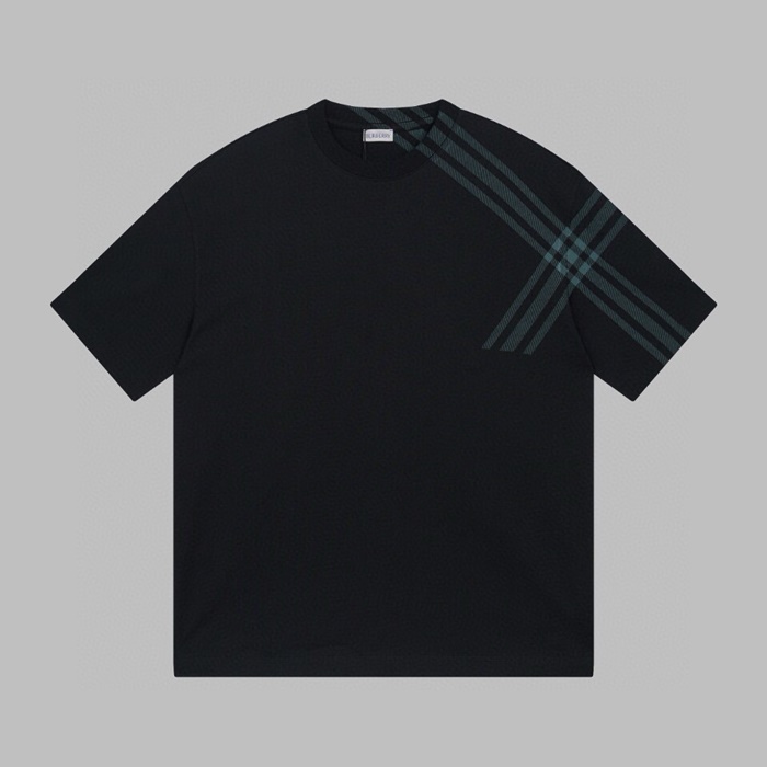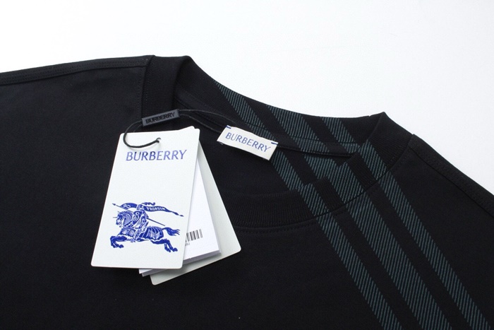 バーバリーメンズブラッククルーネック半袖Tシャツc252