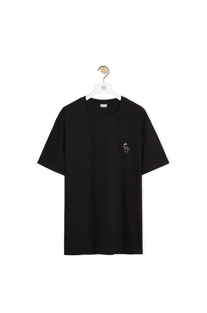 ロエベユニセックスイニシャルブラック半袖Tシャツc280