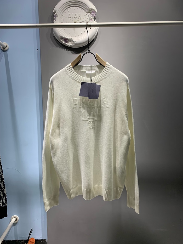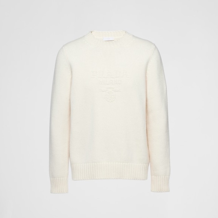 プラダメンズクルーネックホワイトニットc304