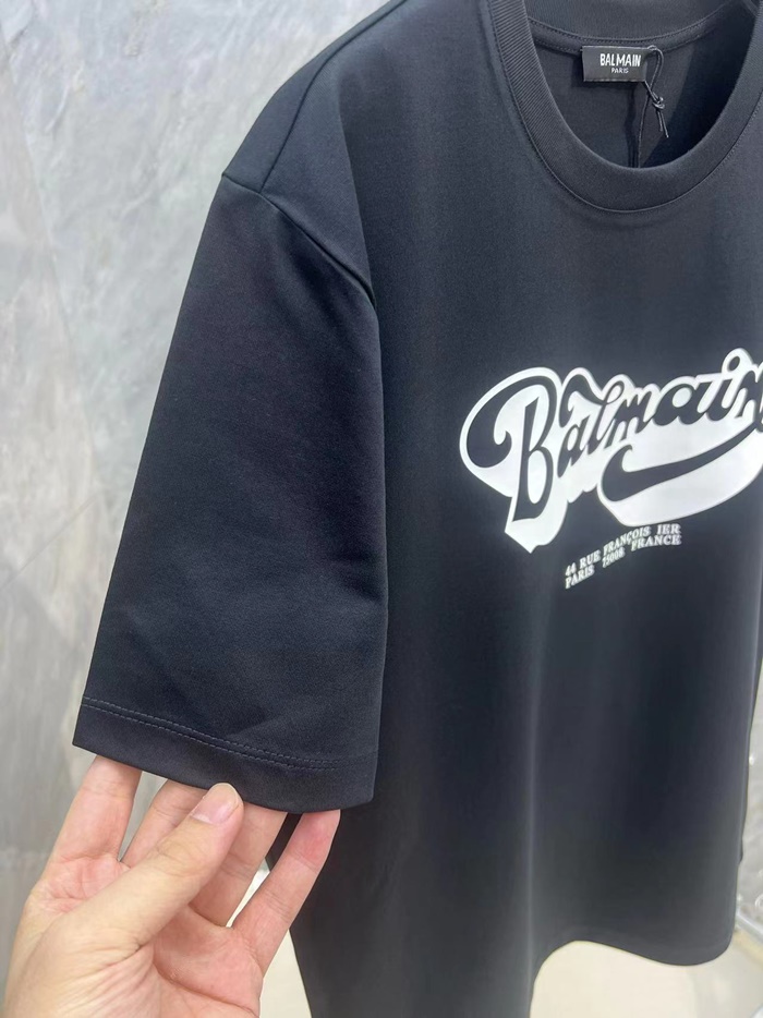バルマンメンズクルーネックブラック半袖Tシャツc02
