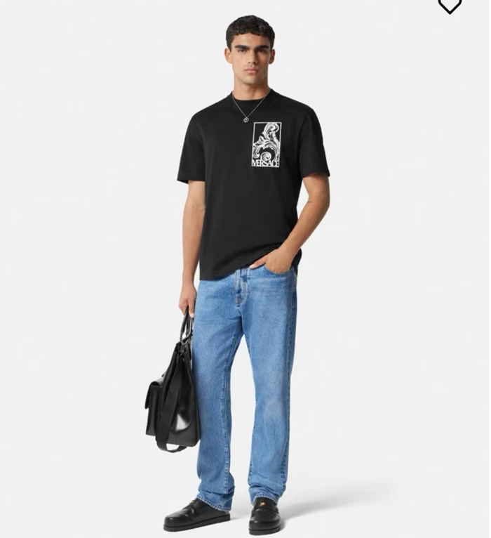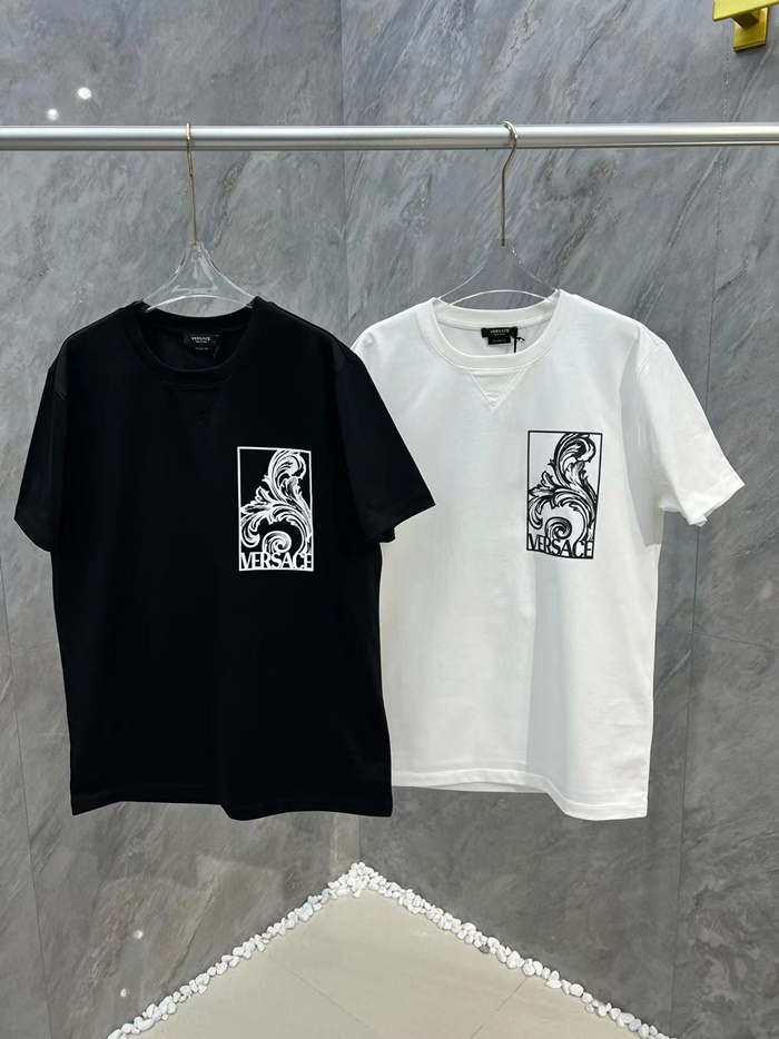 ヴェルサーチェメンズイニシャルブラック半袖Tシャツc06