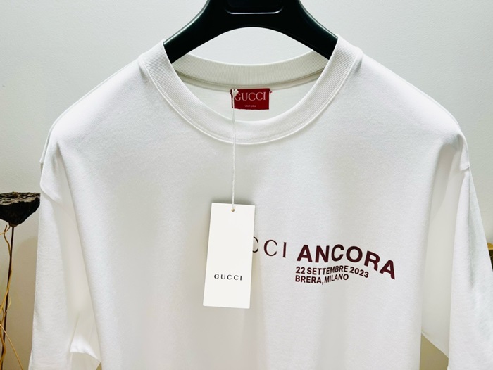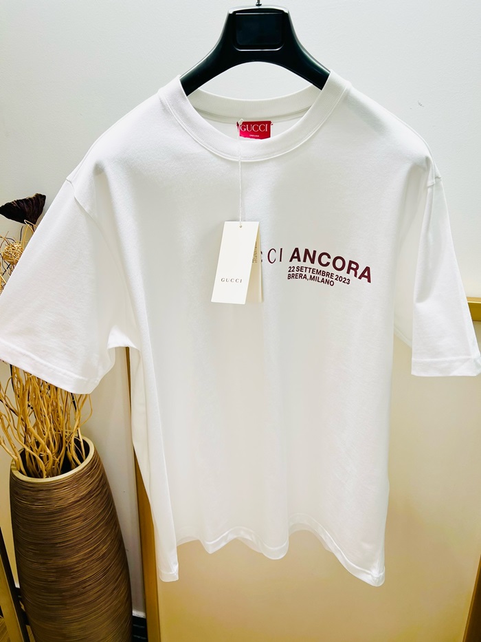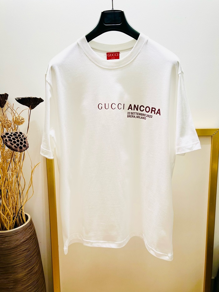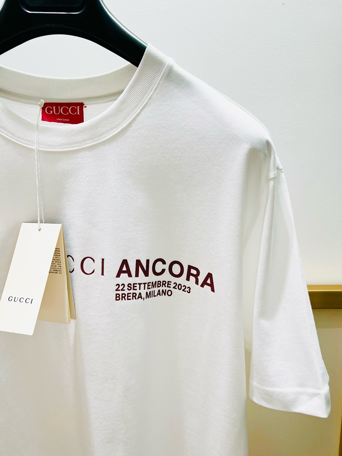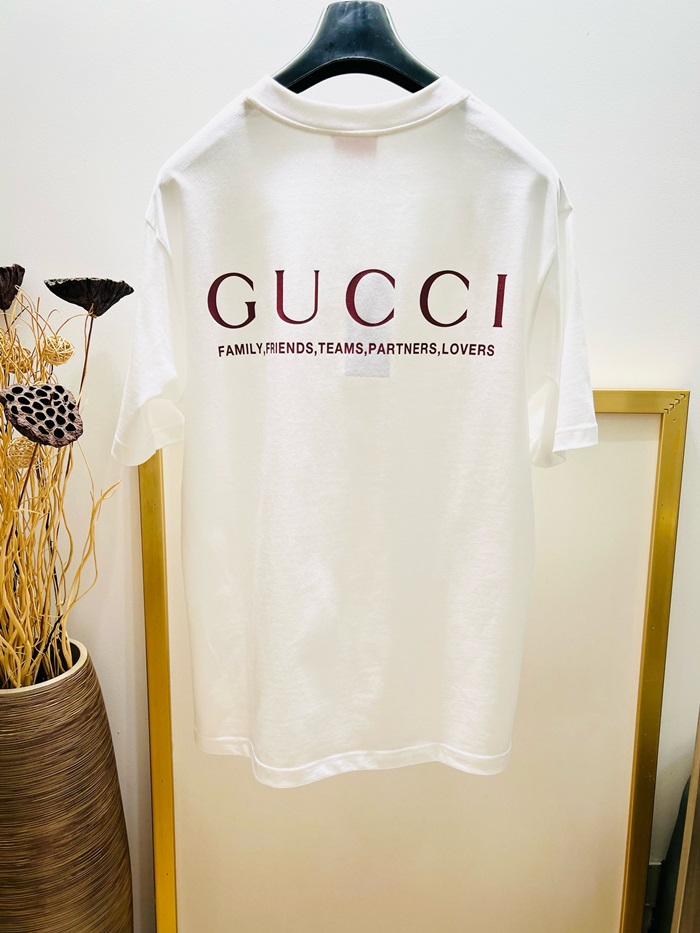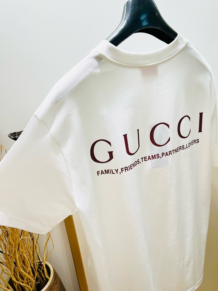 グッチユニセックスホワイト半袖Tシャツc317