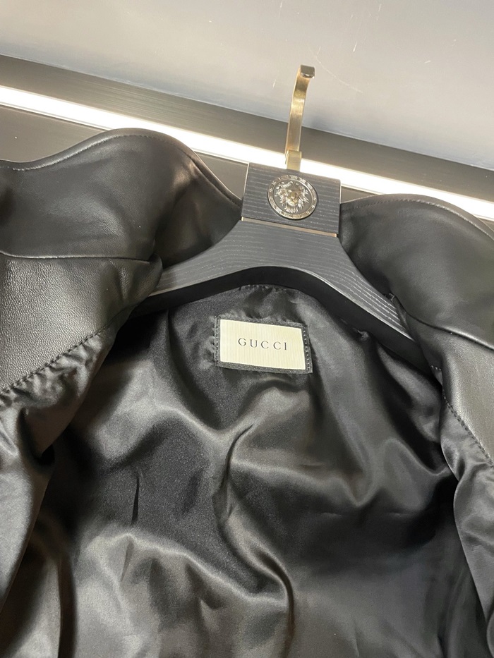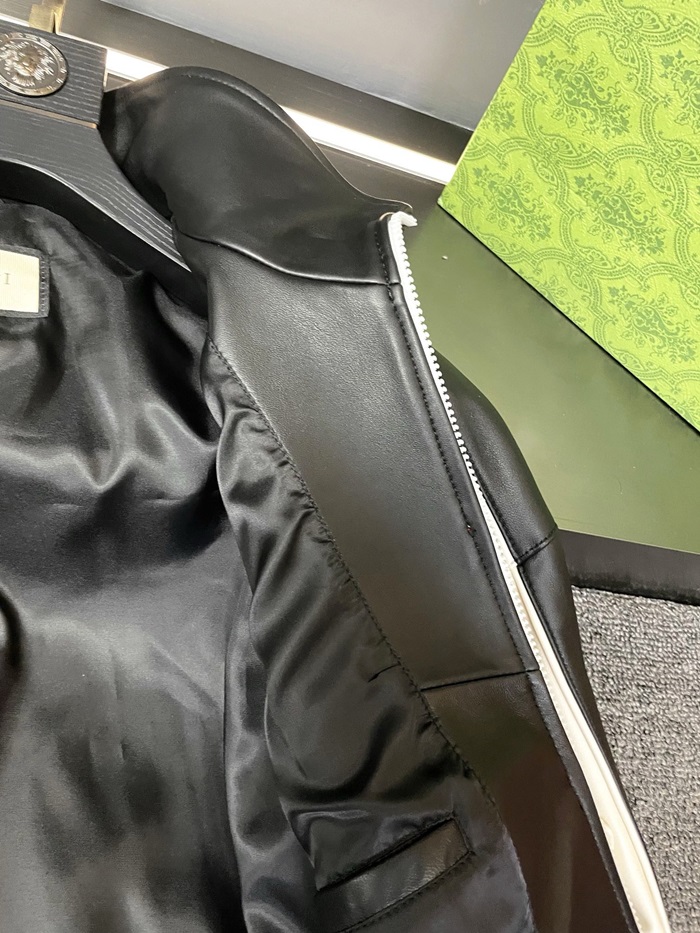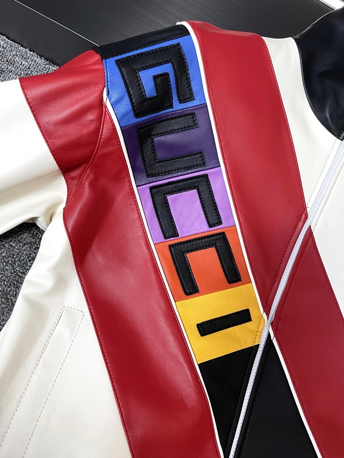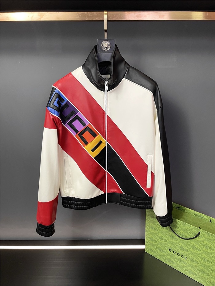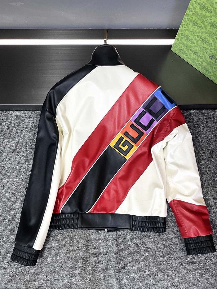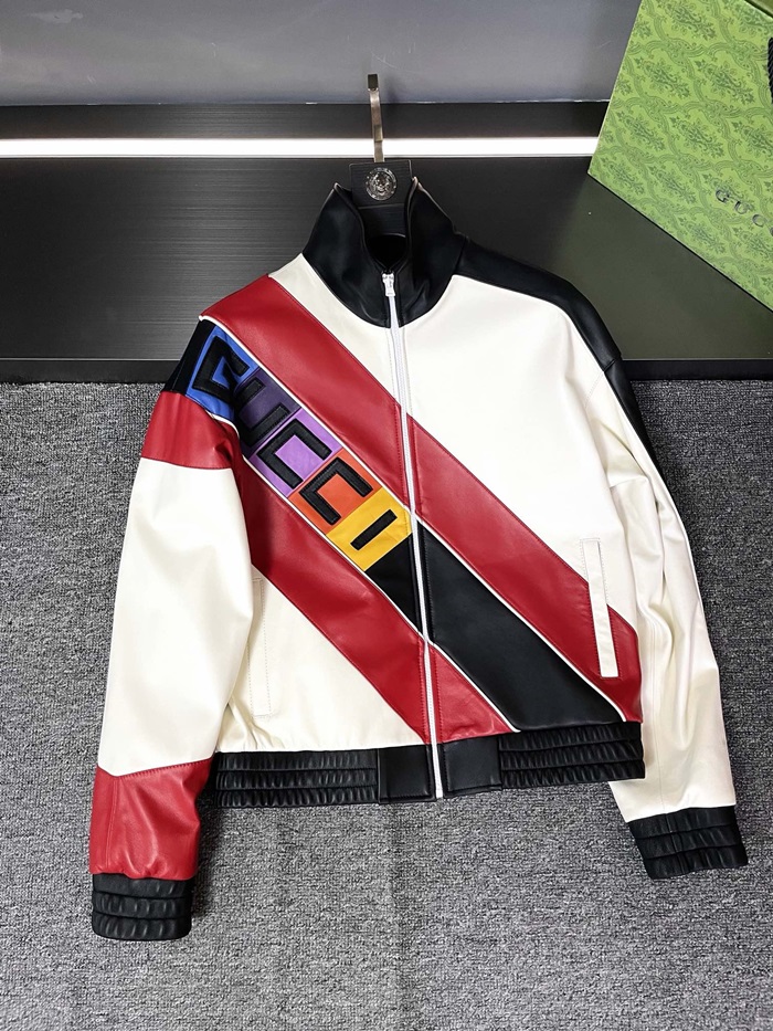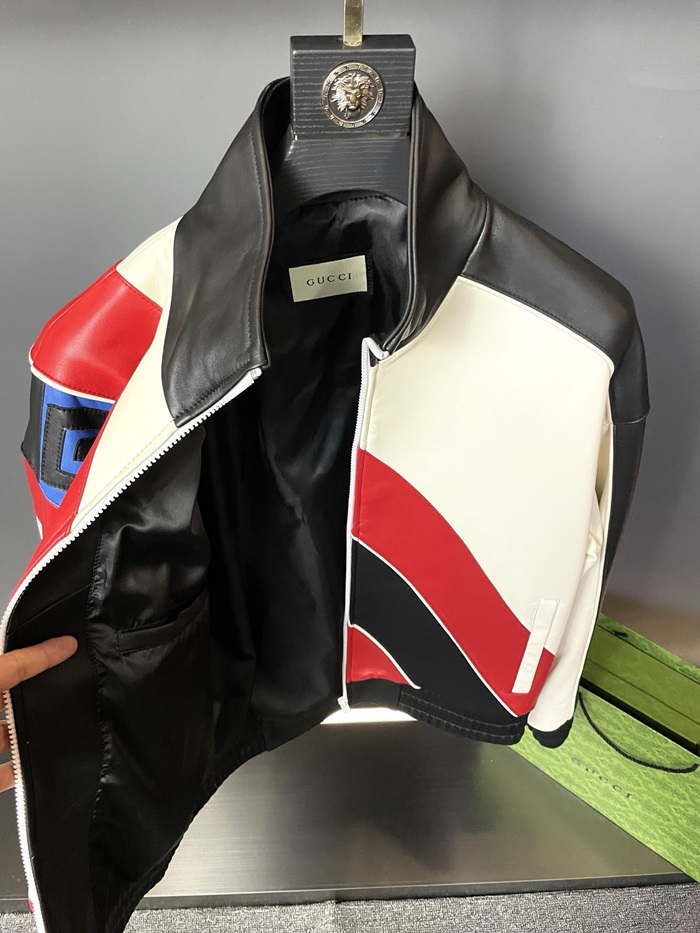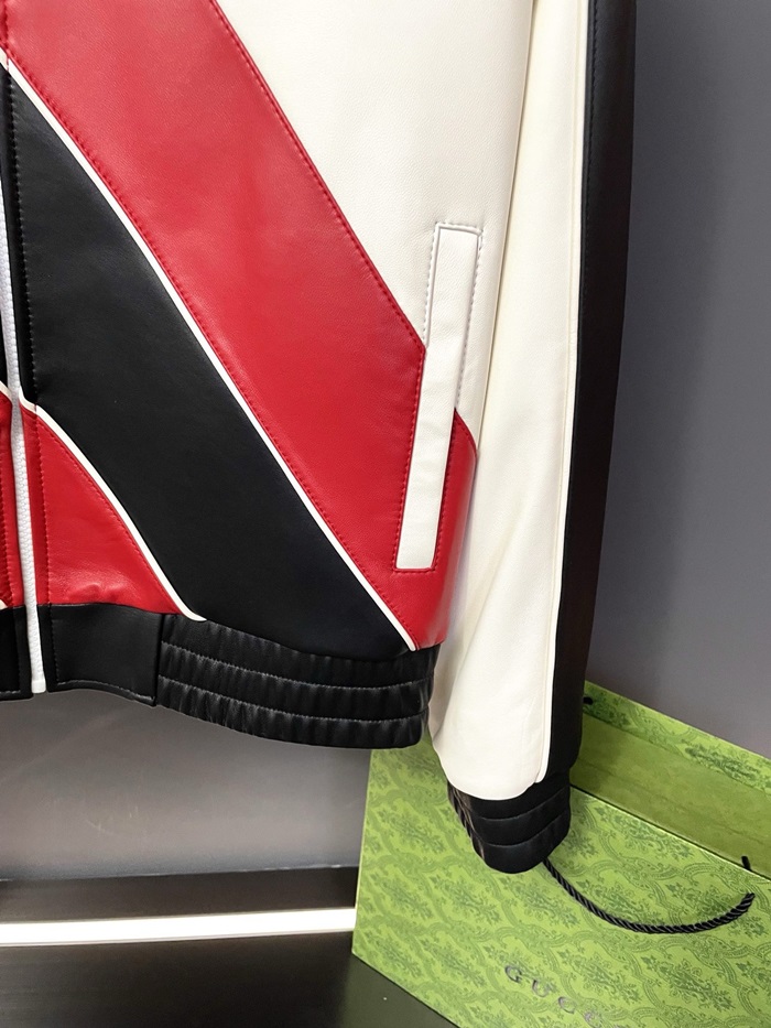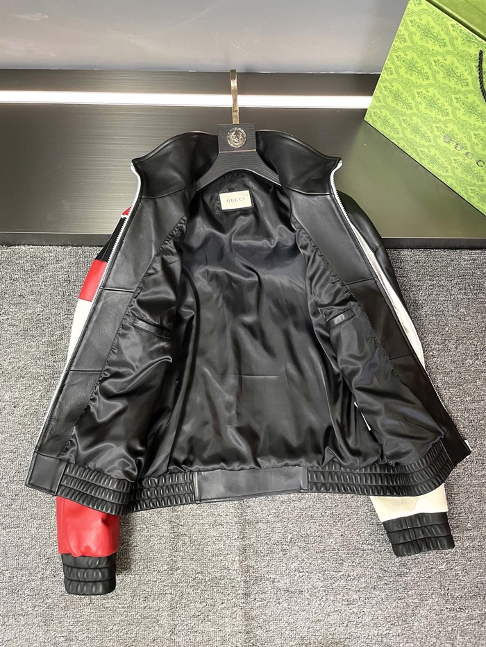 グッチメンズモダンレッドレザージャケットc318