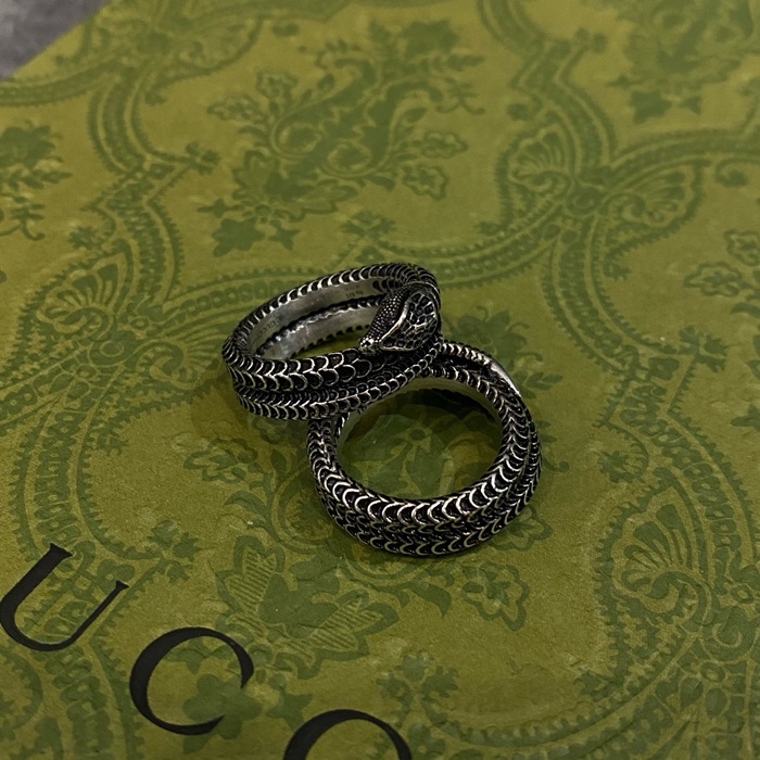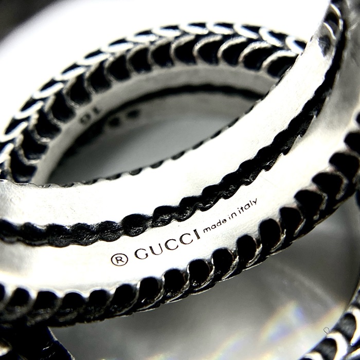 グッチユニセックスホワイトゴールドリングc1874