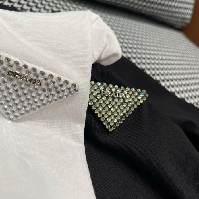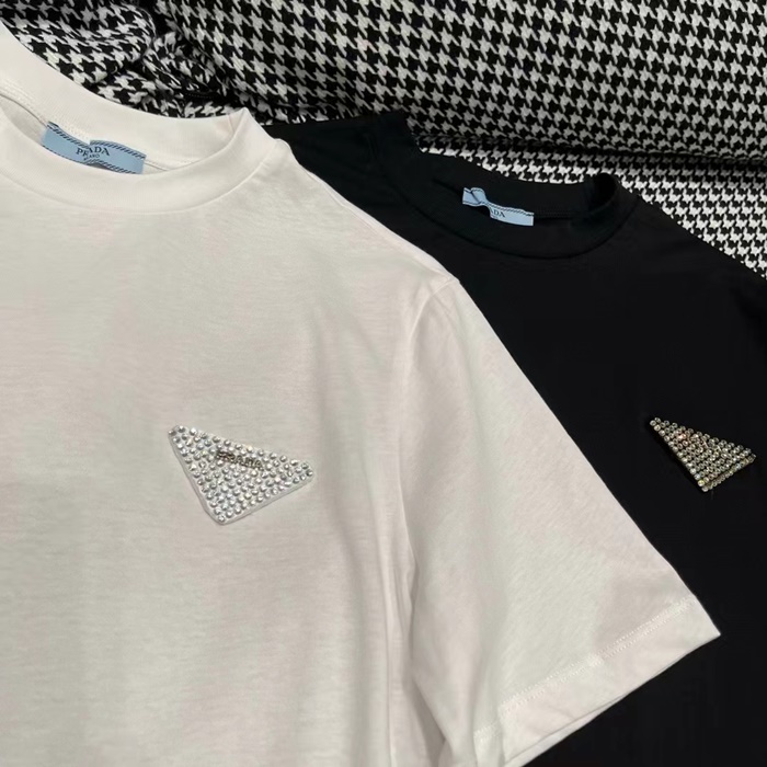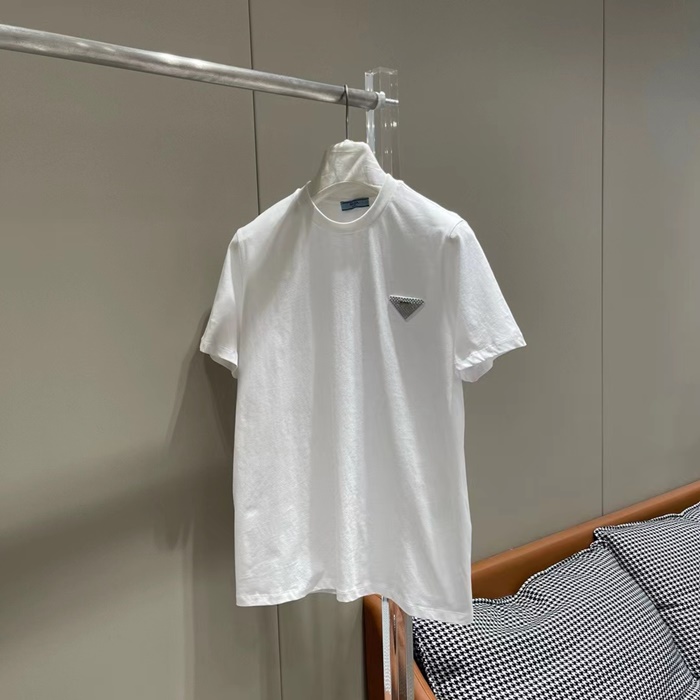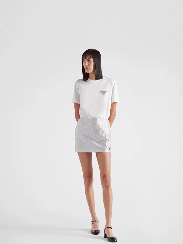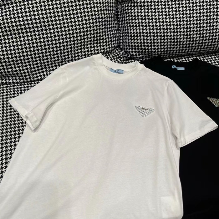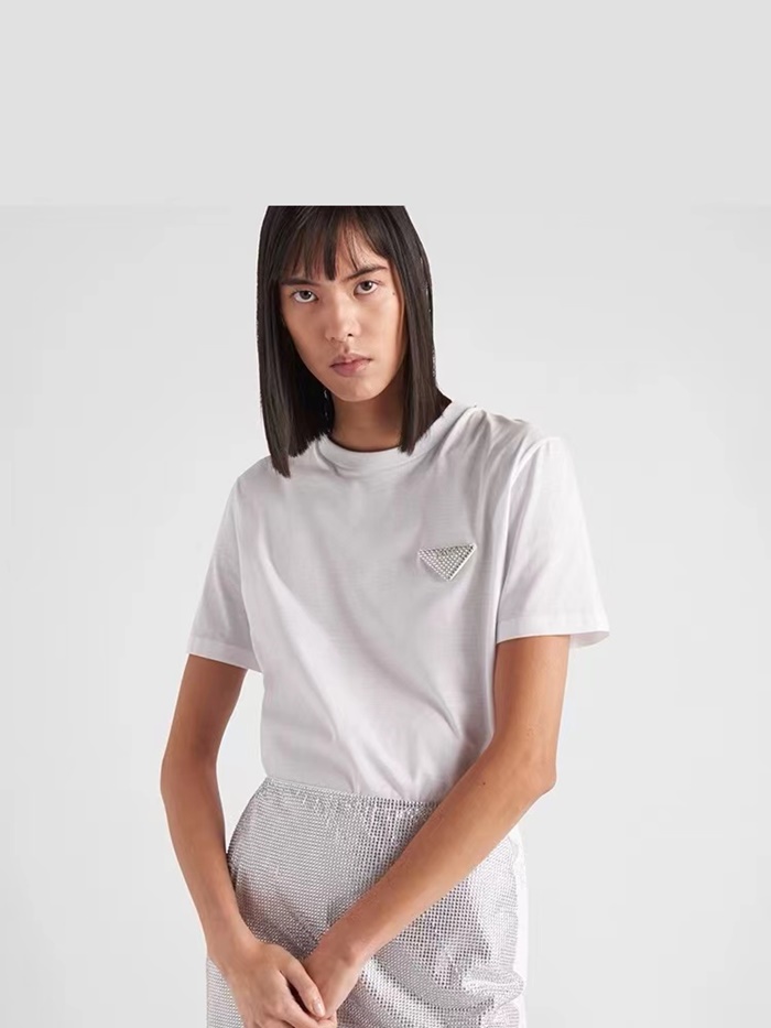 プラダレディースホワイトクルーネック半袖Tシャツc334