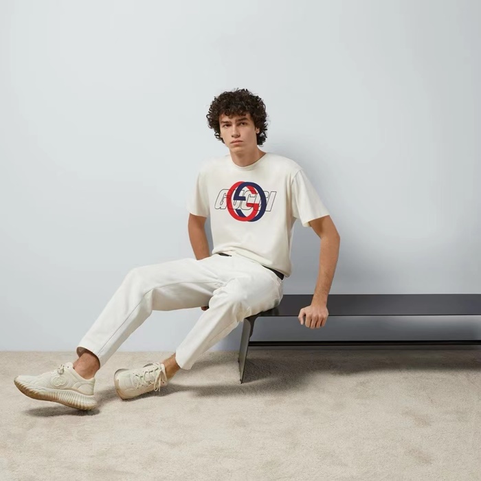 グッチメンズアイボリー半袖Tシャツc325