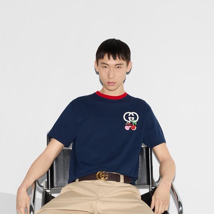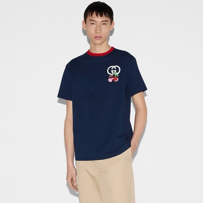 グッチメンズブルーシャツc347