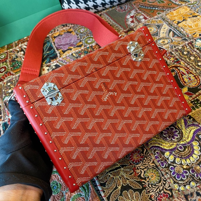 ゴヤールユニセックスレッドカセットトランクバッグb1382