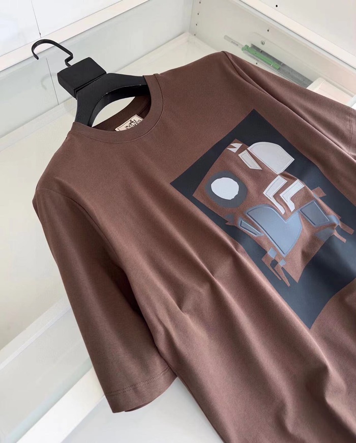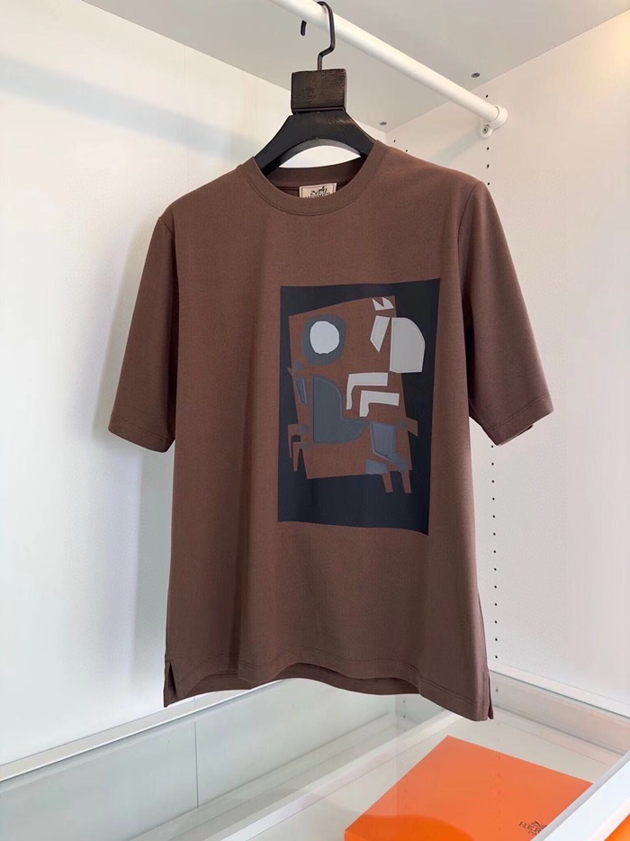 エルメスメンズブラウン半袖Tシャツe174