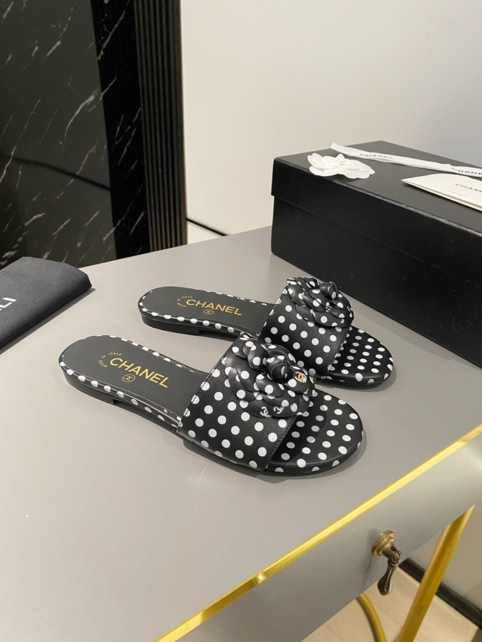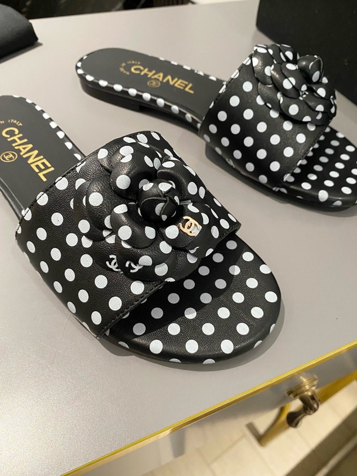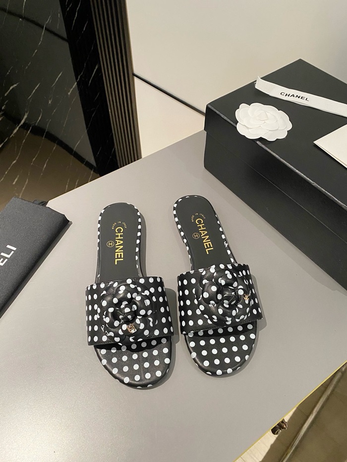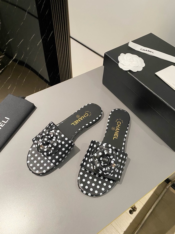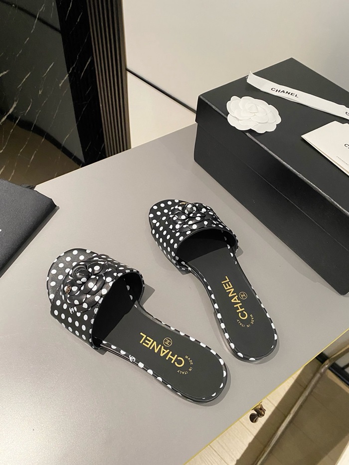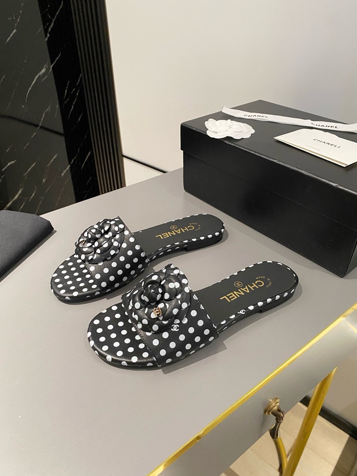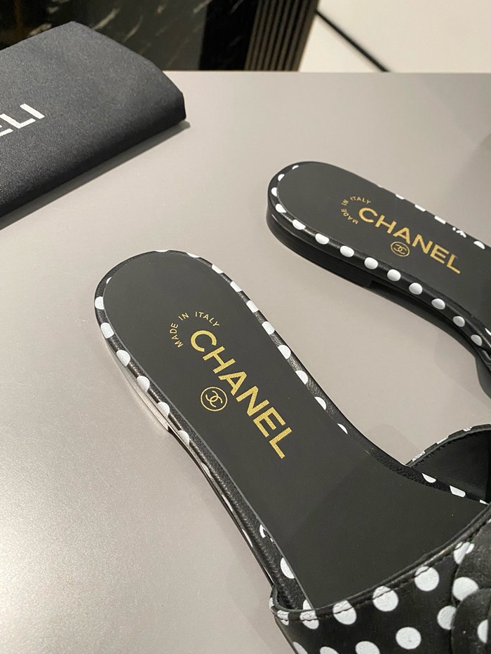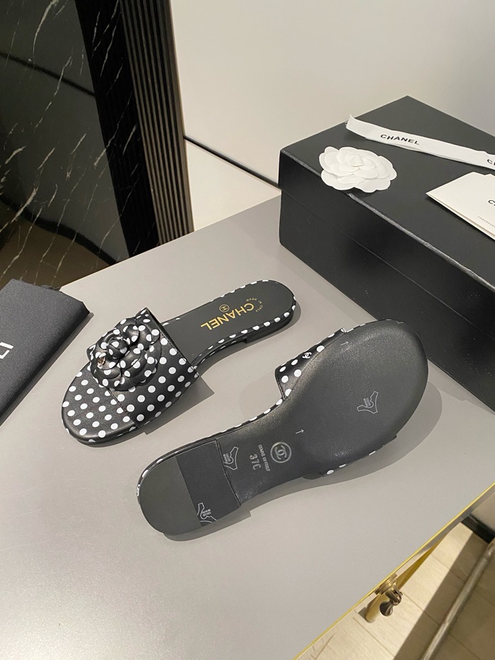 シャネルレディースカメリアブラックミュールs351
