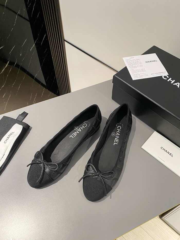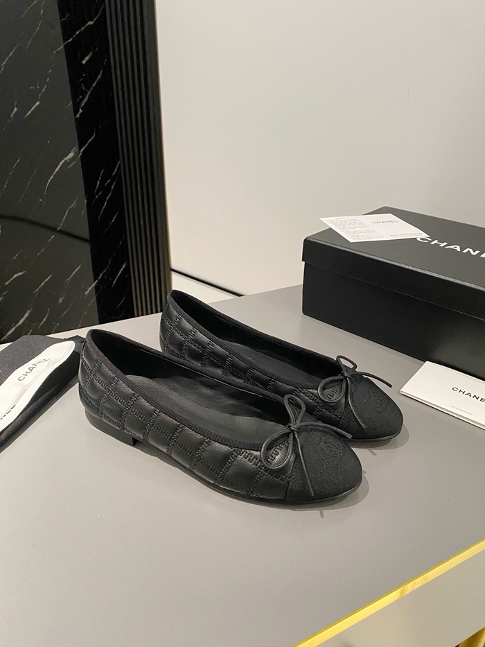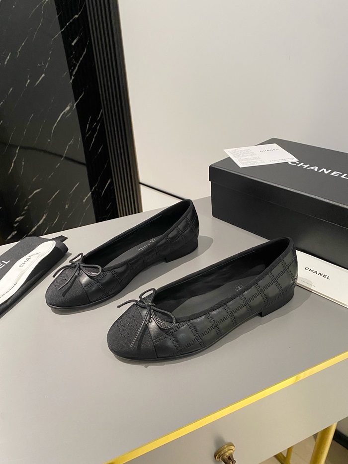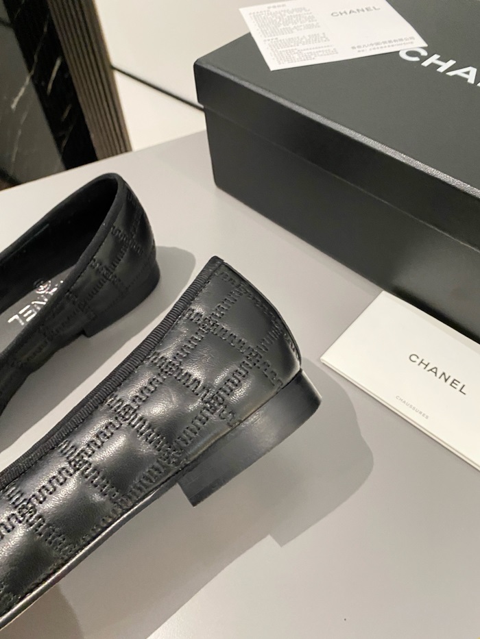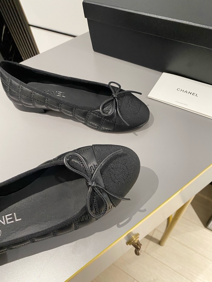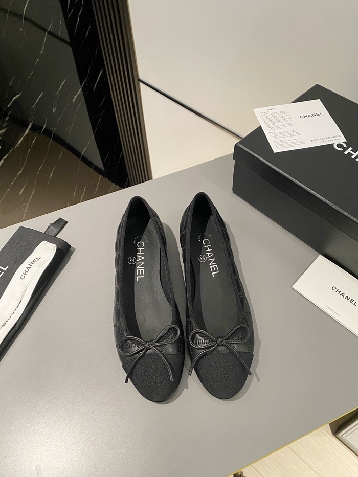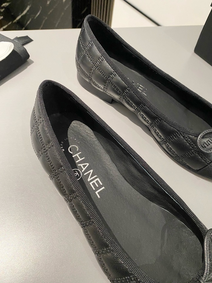 シャネルレディースブラックバレリーナフラットs360