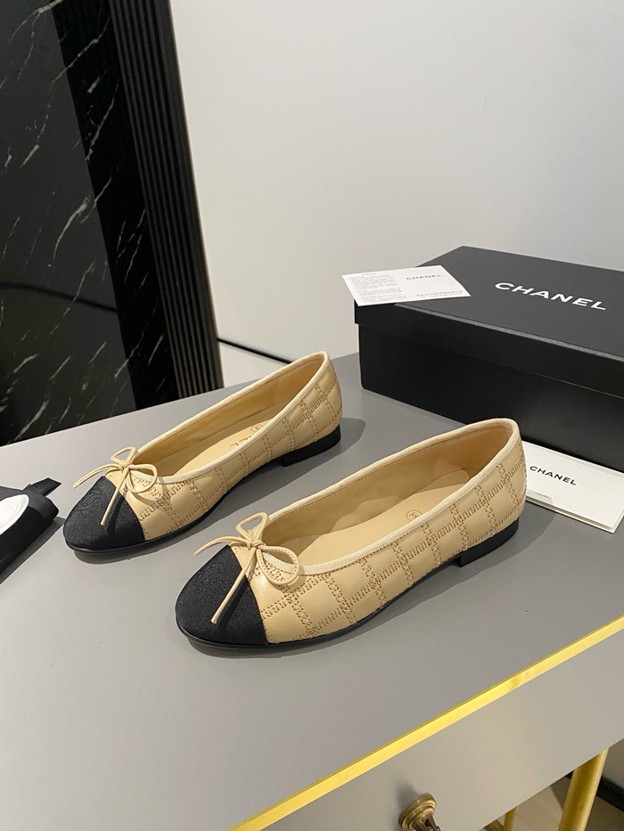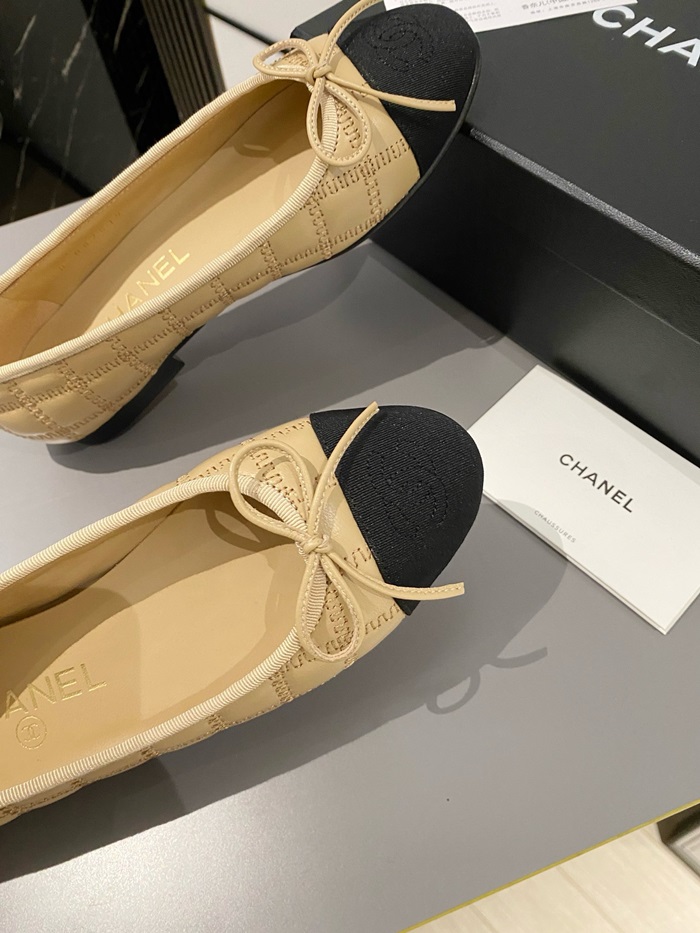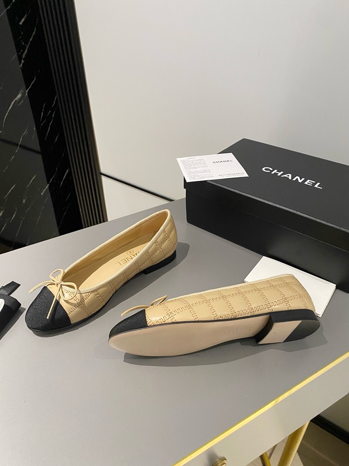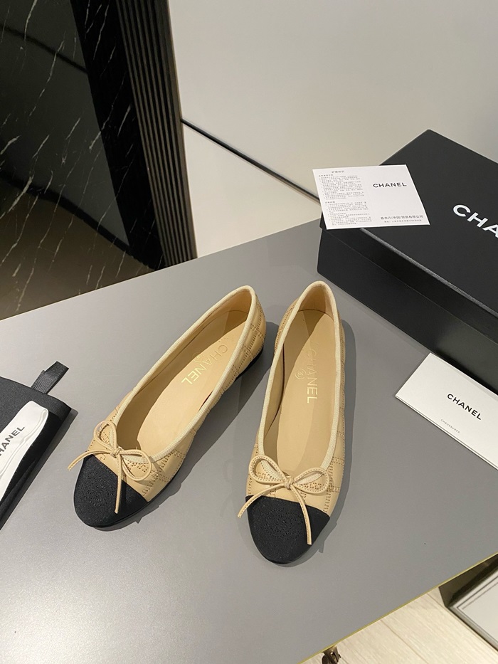 シャネルレディースベージュバレリーナフラットs362