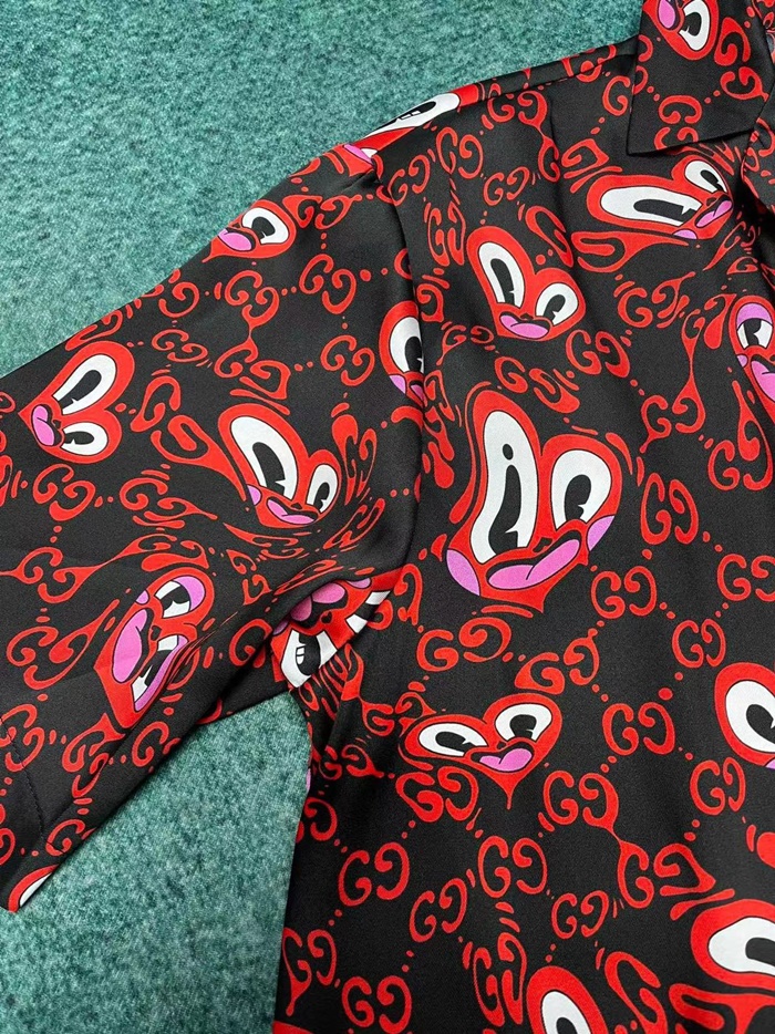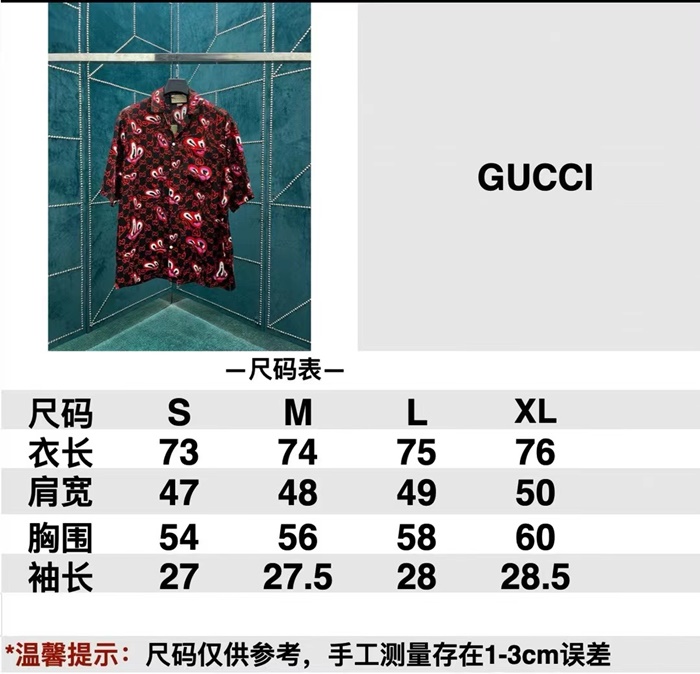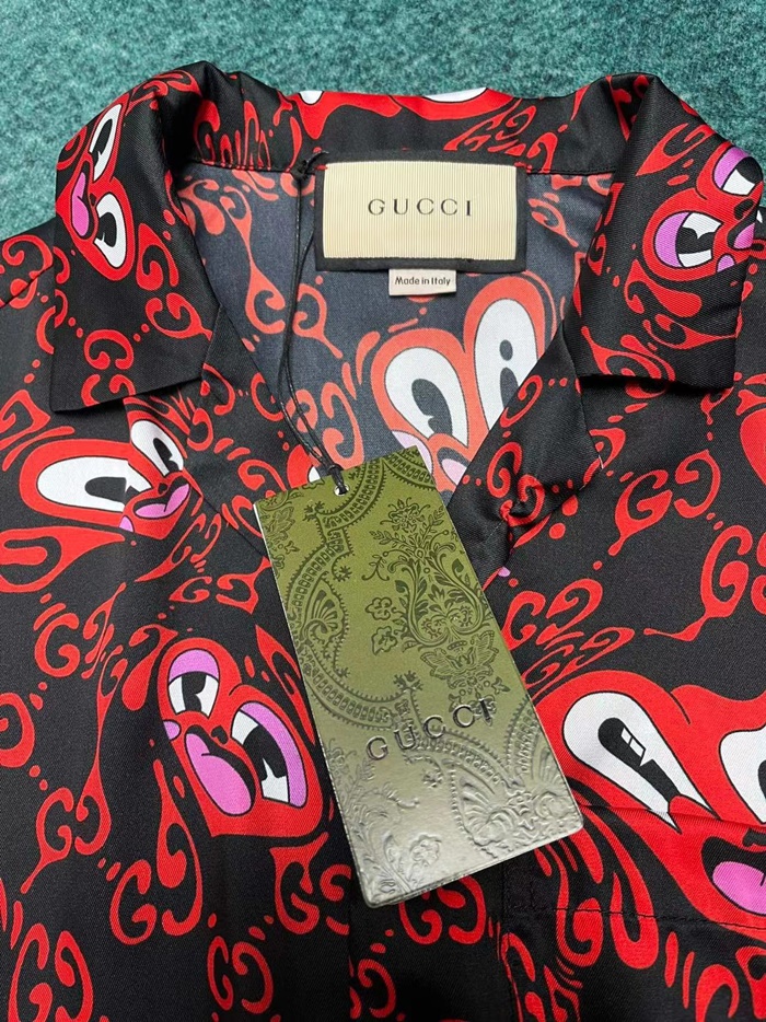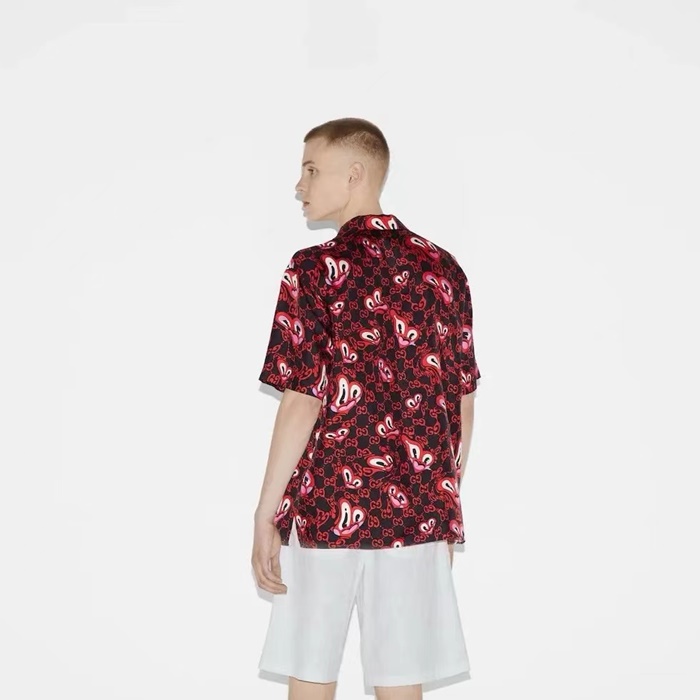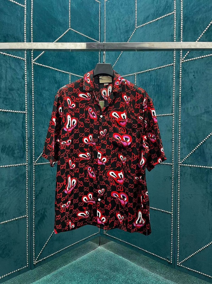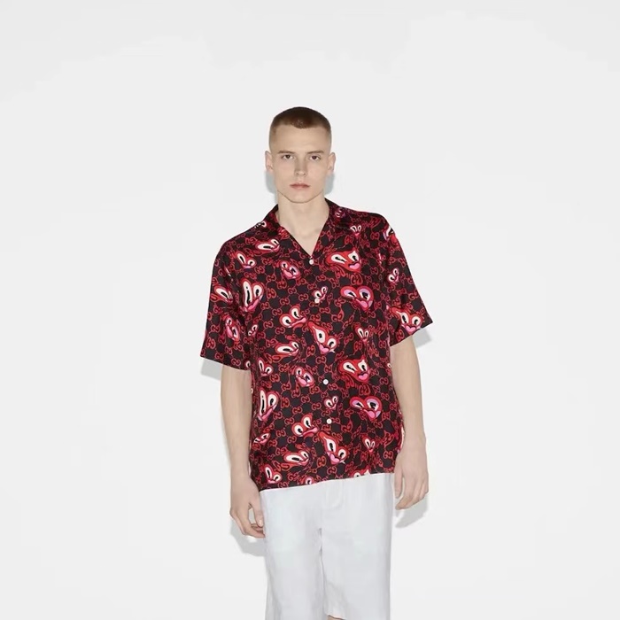 グッチメンズレッド半袖シャツc365