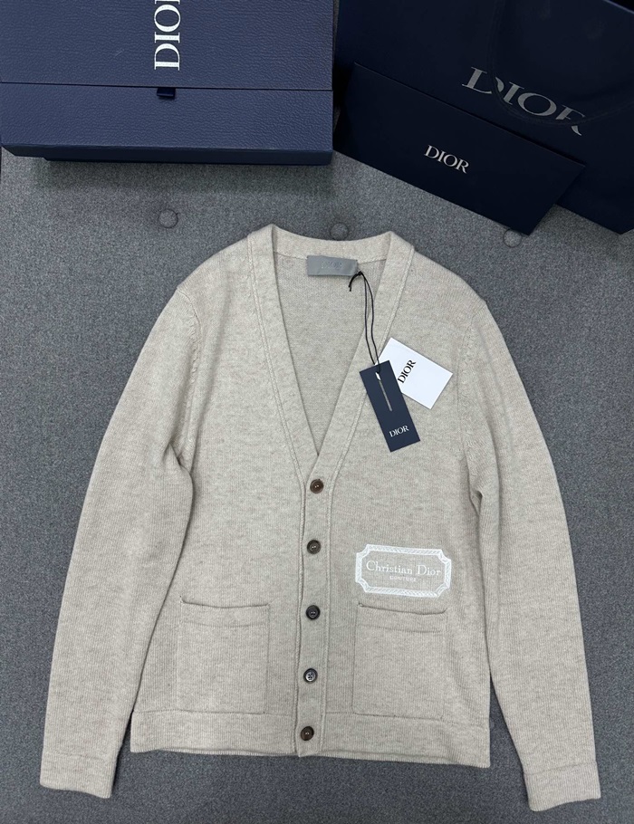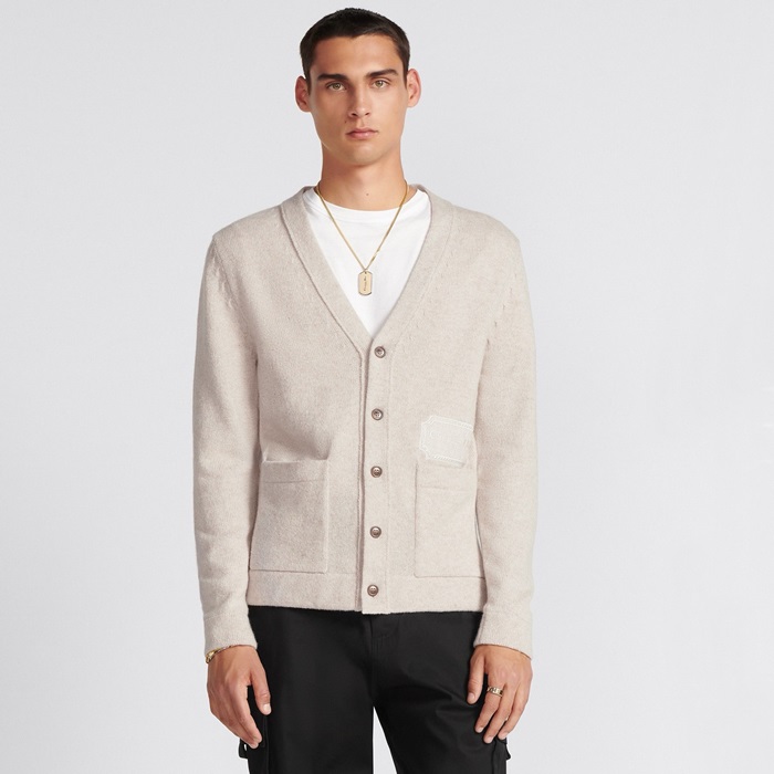 ディオールメンズベージュネックカーディガンc386