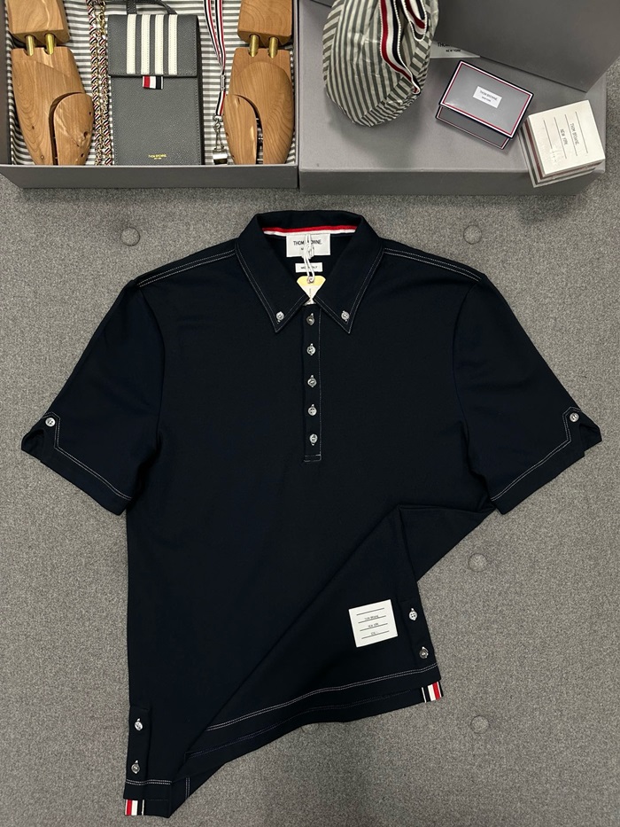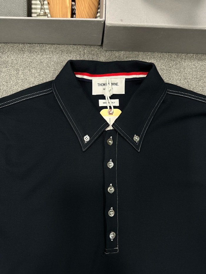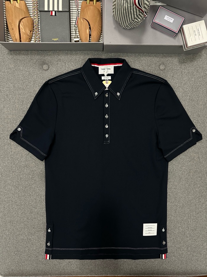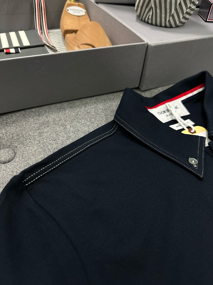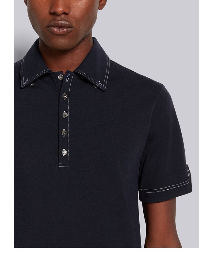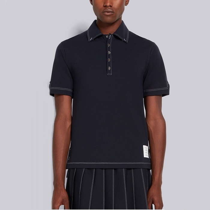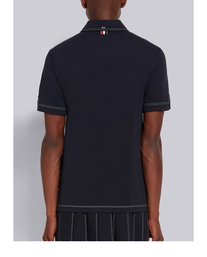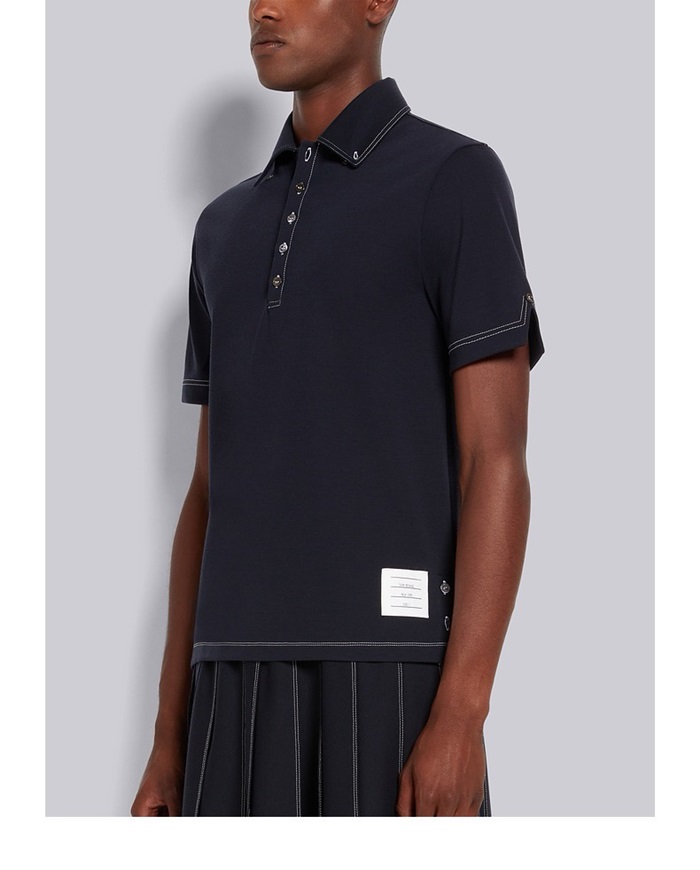 トムブラウンメンズネイビーポロ半袖Tシャツc391