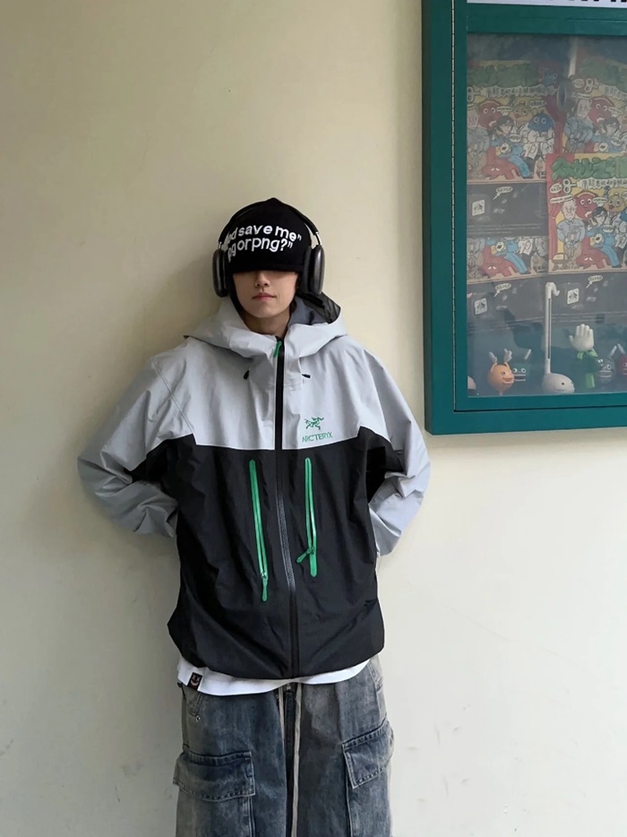アークテリクスメンズグレーウィンドブレーカージャケットc396