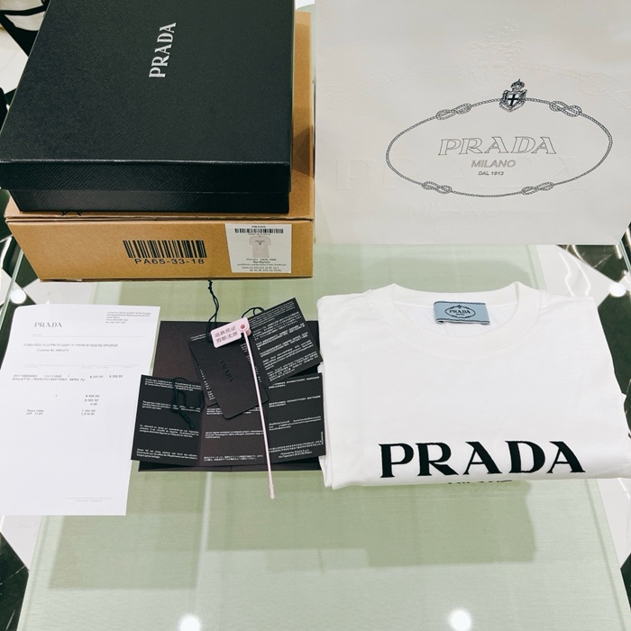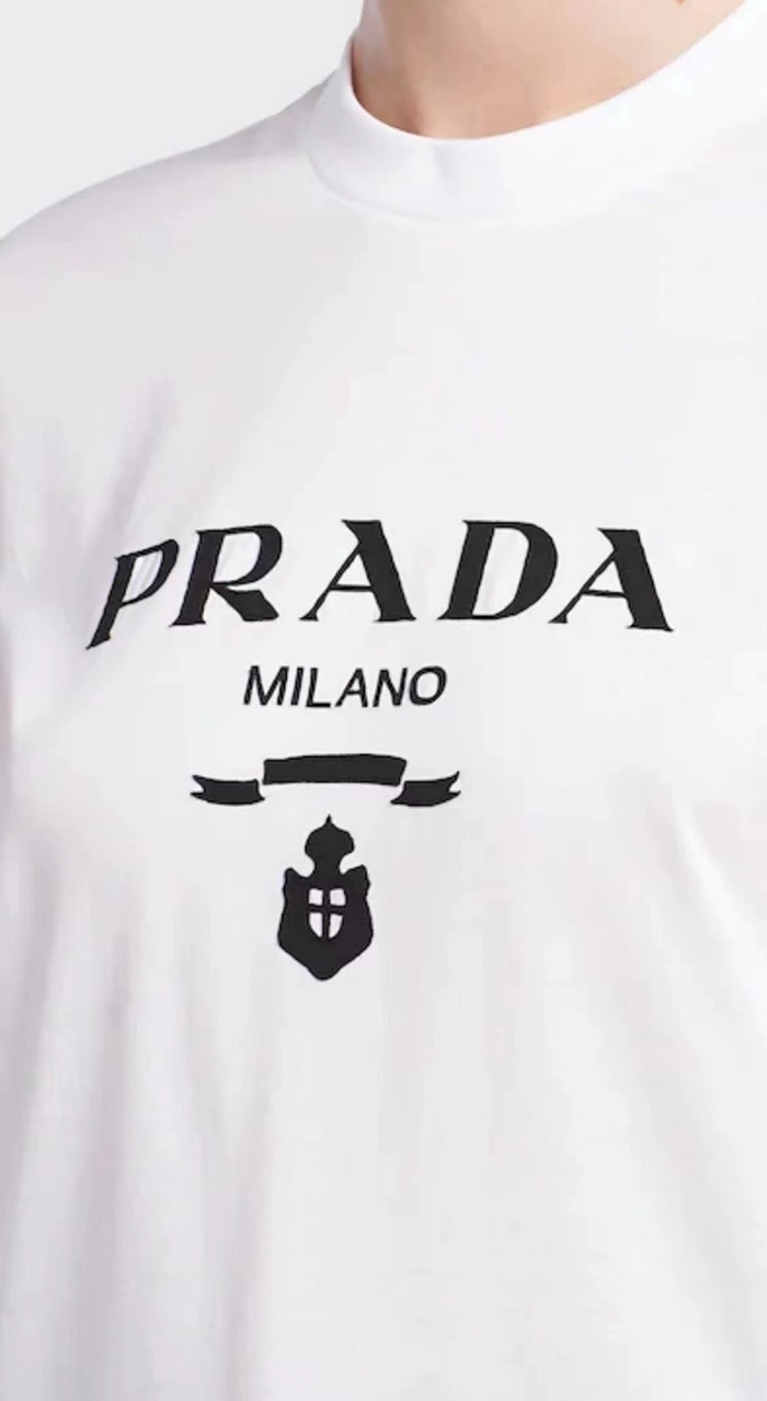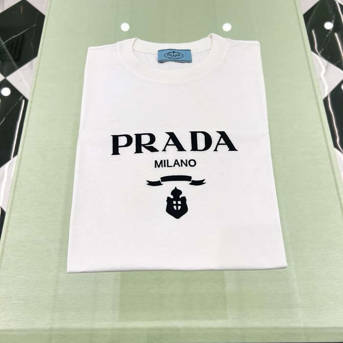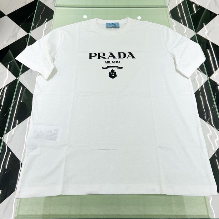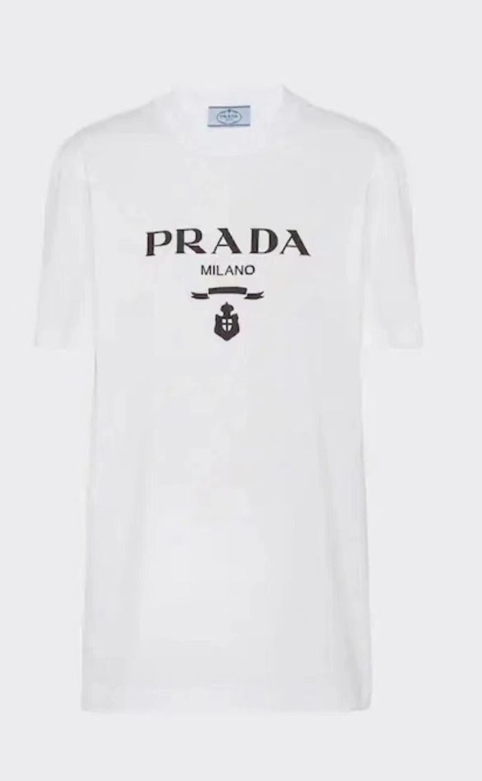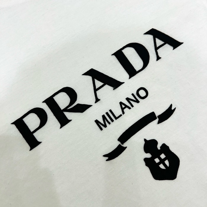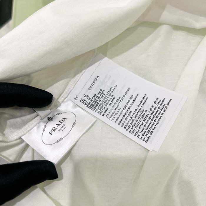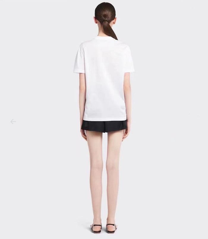 プラダレディースホワイト半袖Tシャツc413