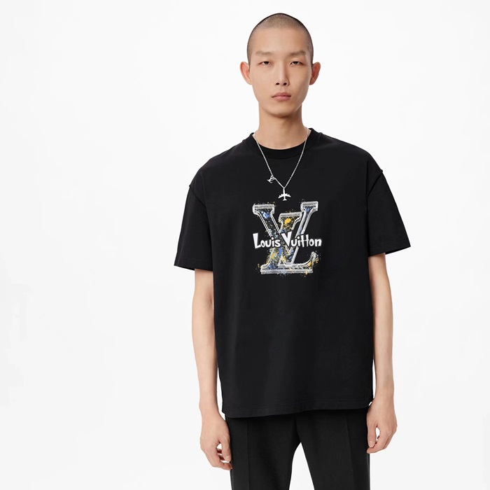 ルイヴィトンメンズブラック半袖Tシャツc439