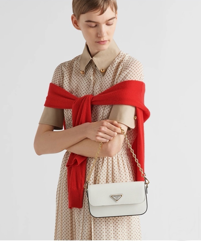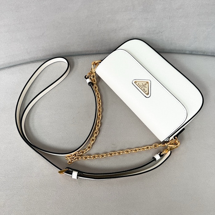 プラダレディースホワイトサフィアーノショルダーバッグ1D356b1596