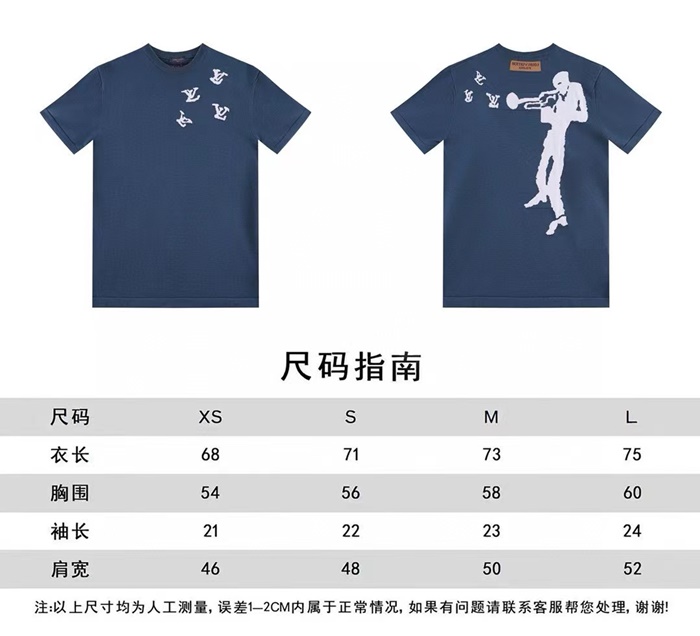 ルイヴィトンメンズネイビー半袖Tシャツc377