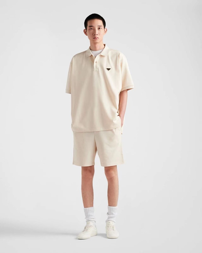 プラダメンズアイボリーポロ半袖Tシャツc363