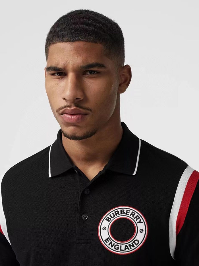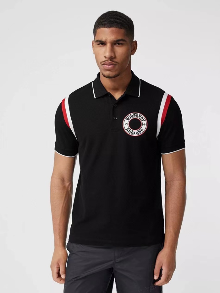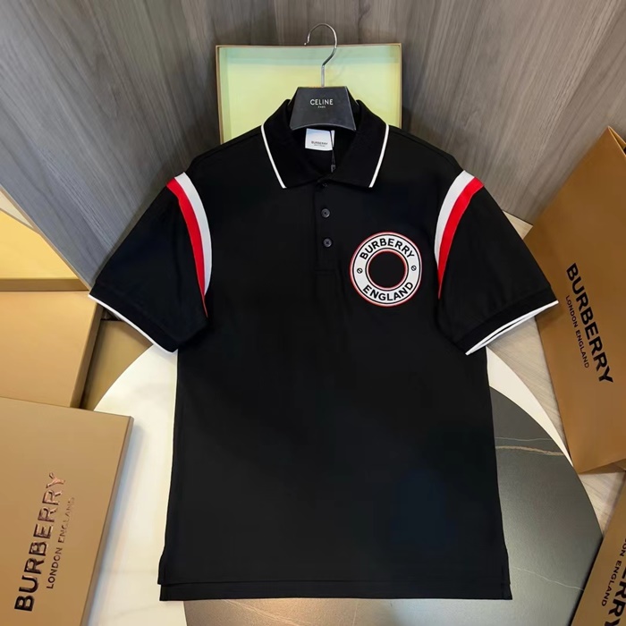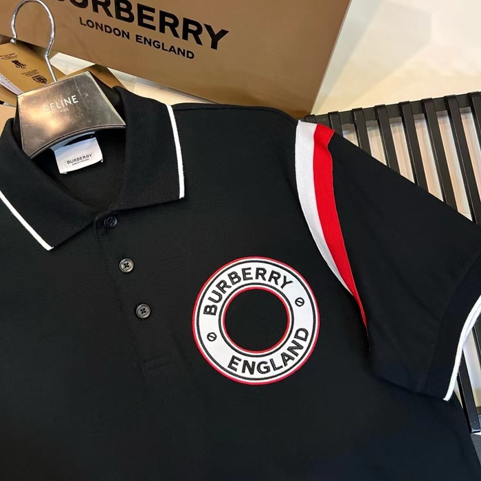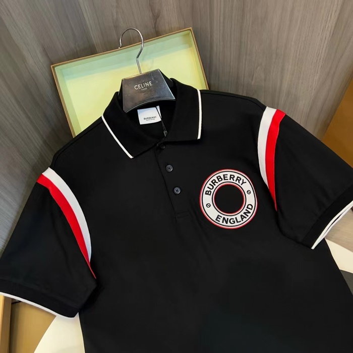 バーバリーメンズブラックポロ半袖Tシャツc321