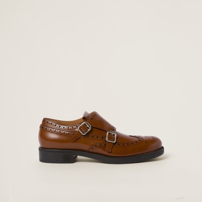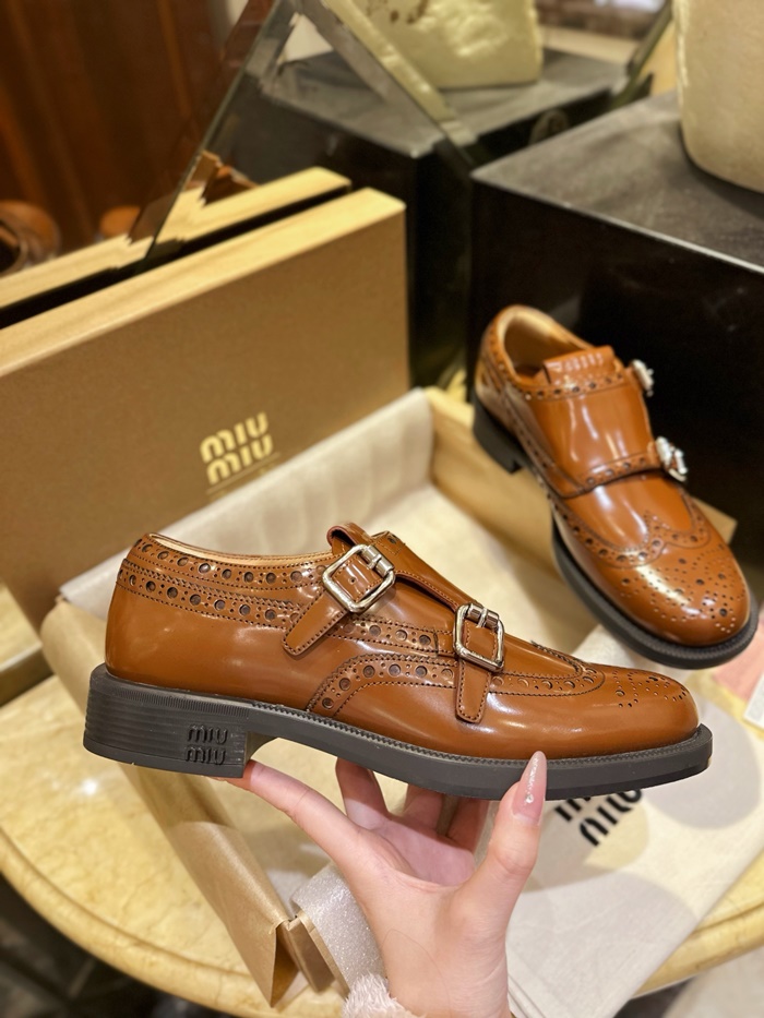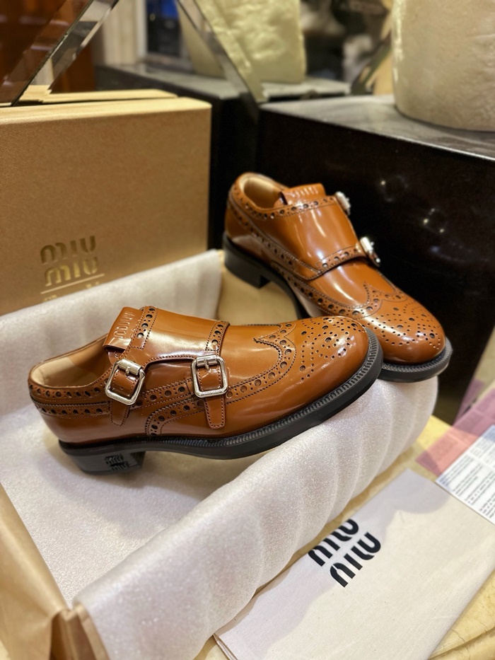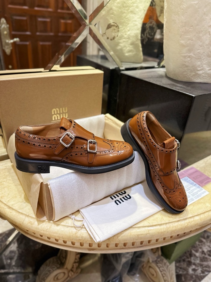 ミュウミュウレディースブラウンローファーs578
