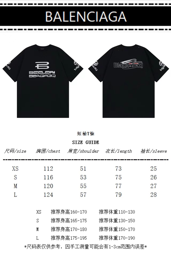 バレンシアガメンズブラック半袖Tシャツc443