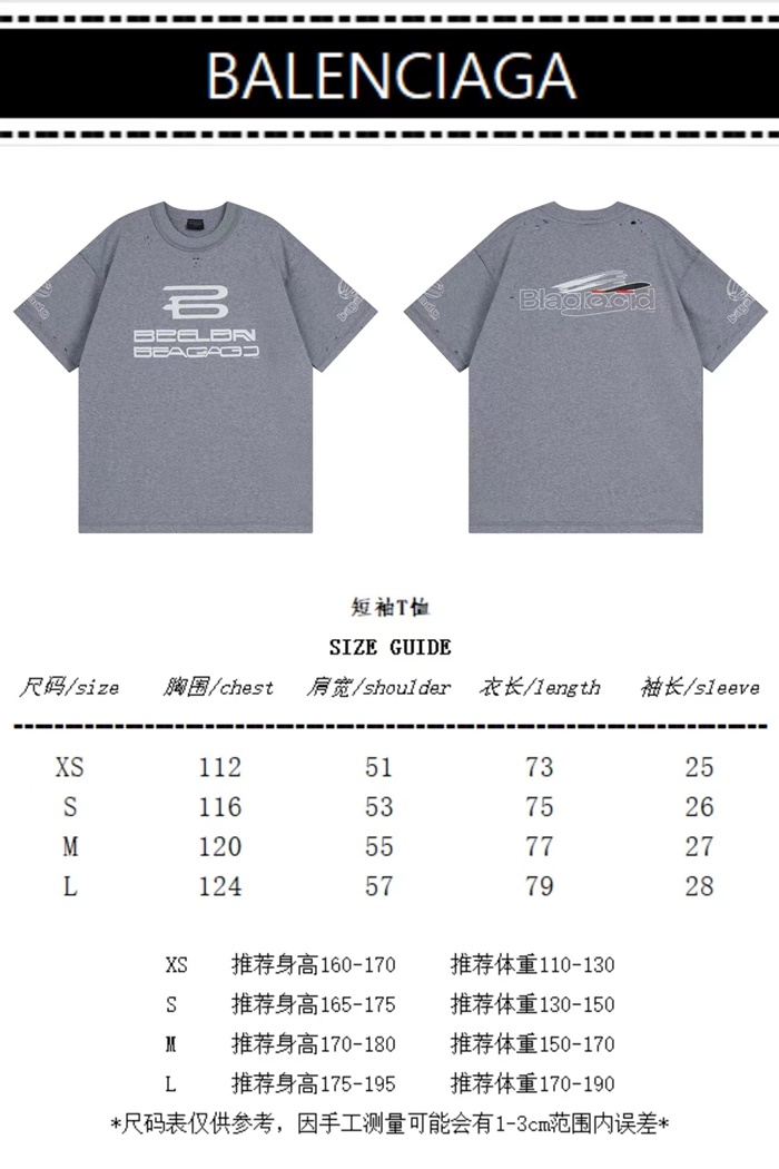 バレンシアガメンズグレー半袖Tシャツc444