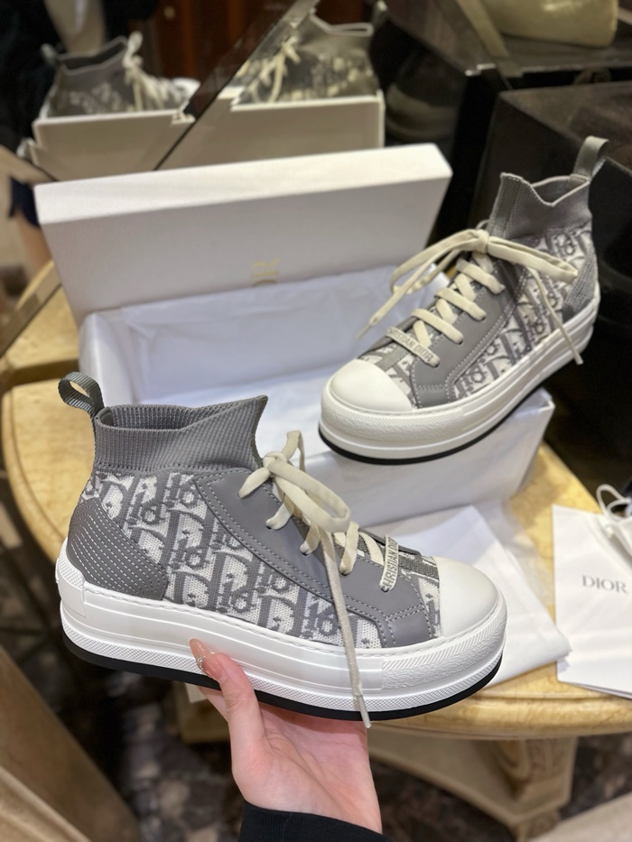 ディオールレディースグレーハイトップスニーカーs607