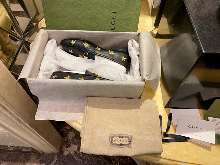 グッチレディースレザーホースビットローファーs614