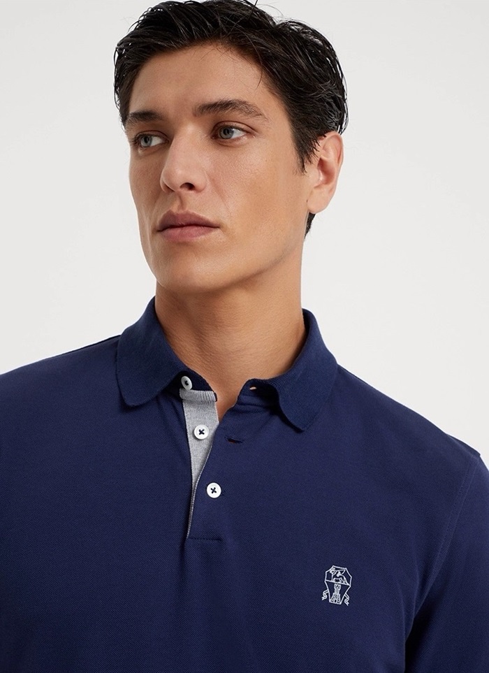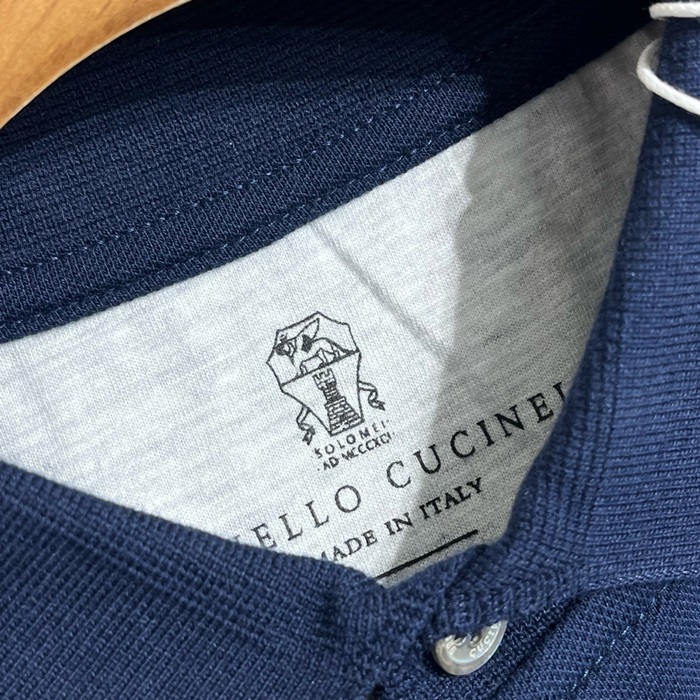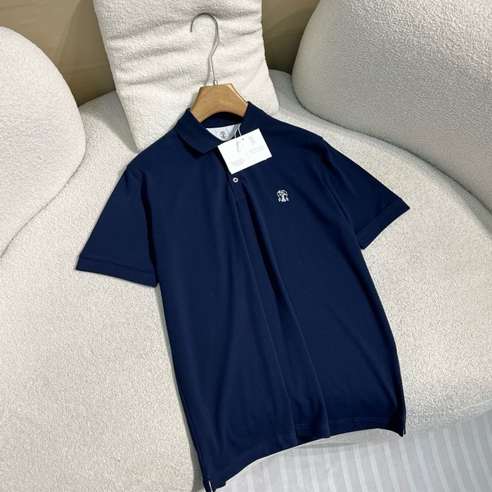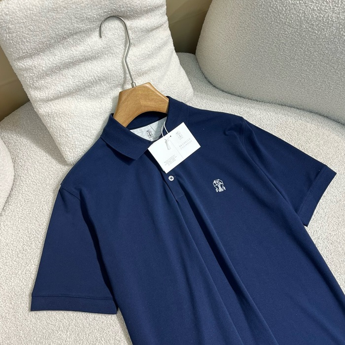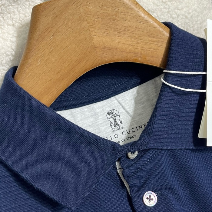 ブルネロクチネリメンズブルーポロ半袖Tシャツc487