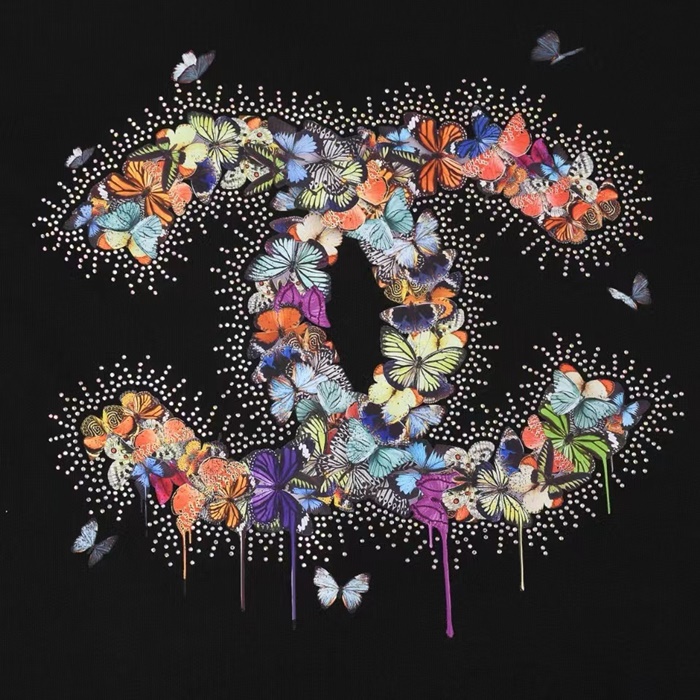 シャネルユニセックスブラック半袖Tシャツc552
