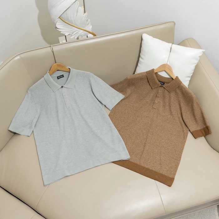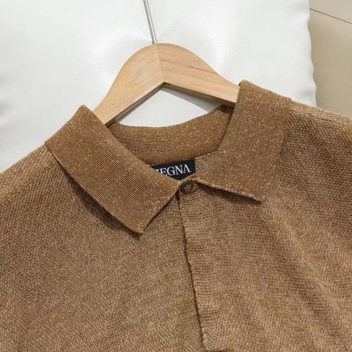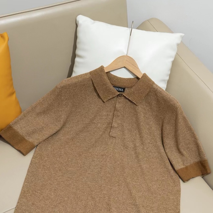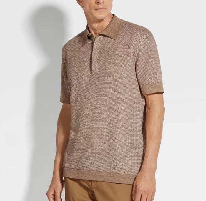 エルメネジルドゼニアメンズベージュポロ半袖Tシャツc05