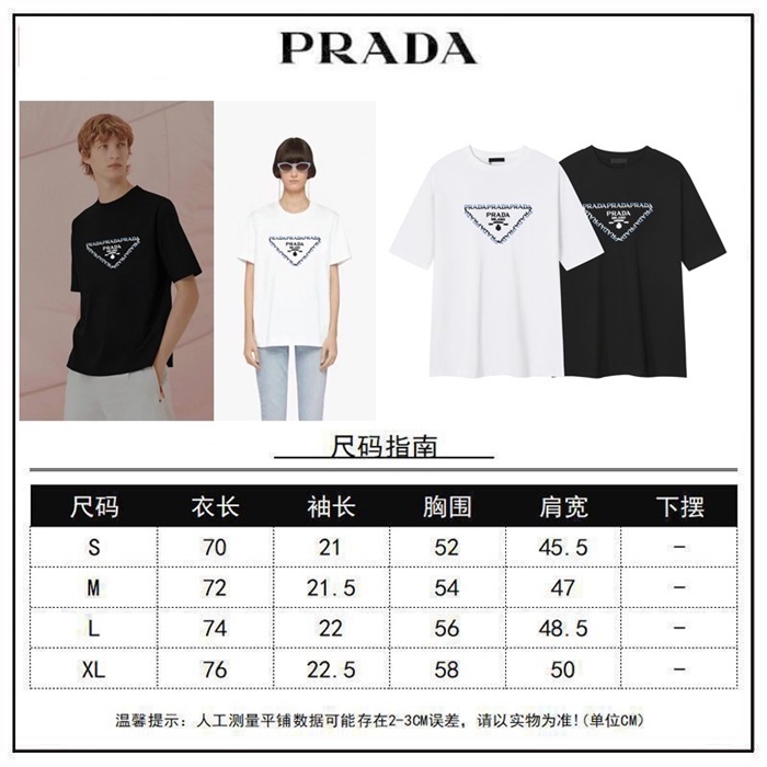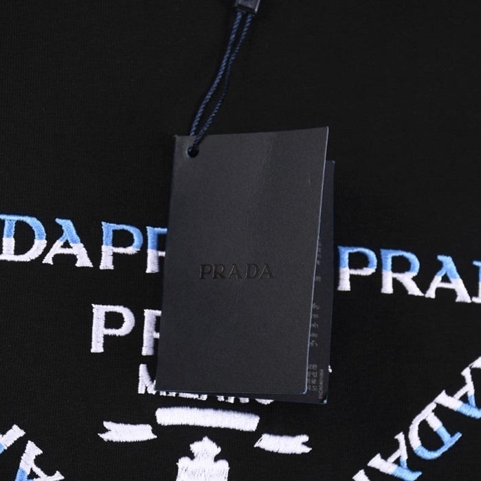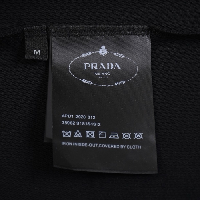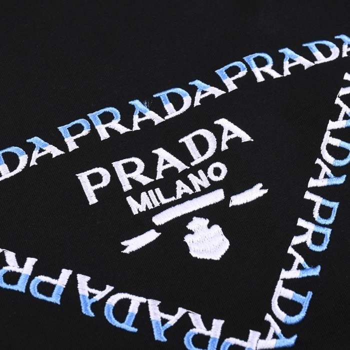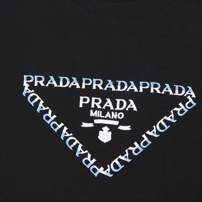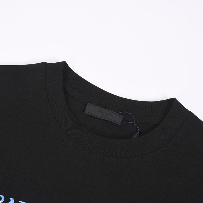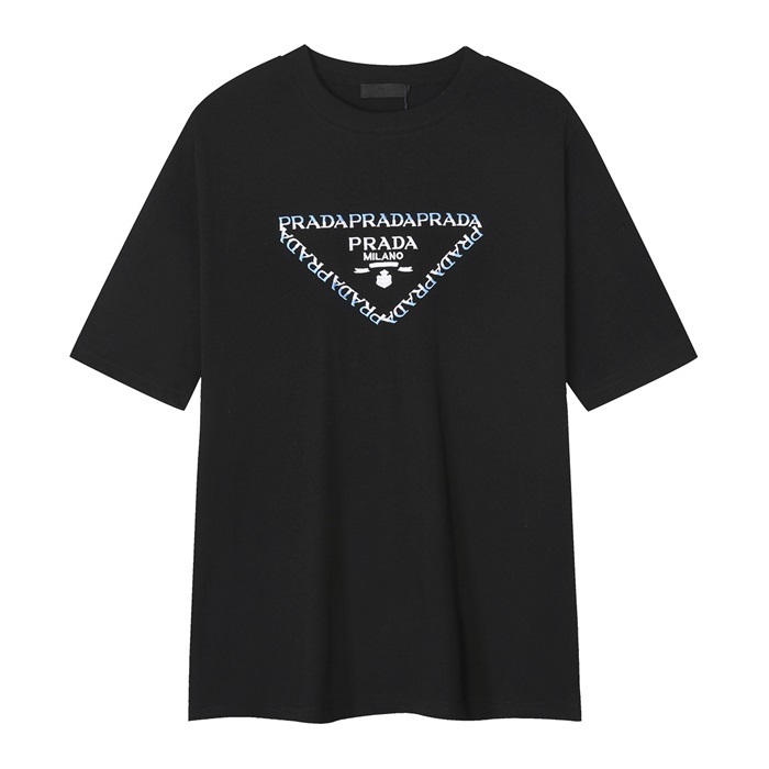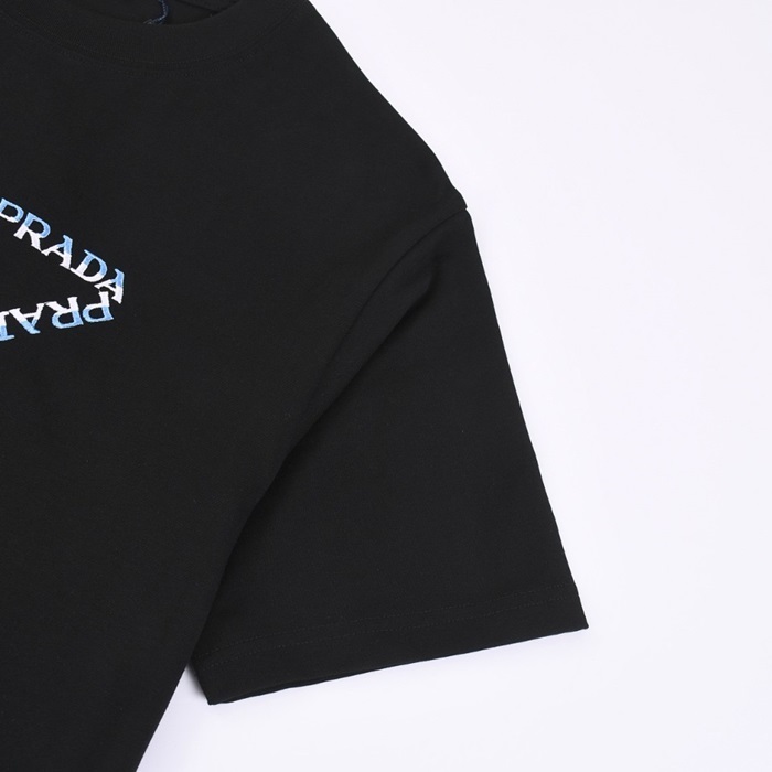 プラダユニセックスブラック半袖Tシャツc588