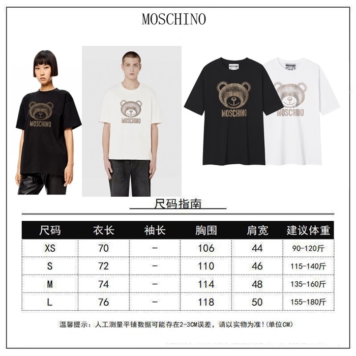 モスキーノユニセックスホワイト半袖Tシャツc590