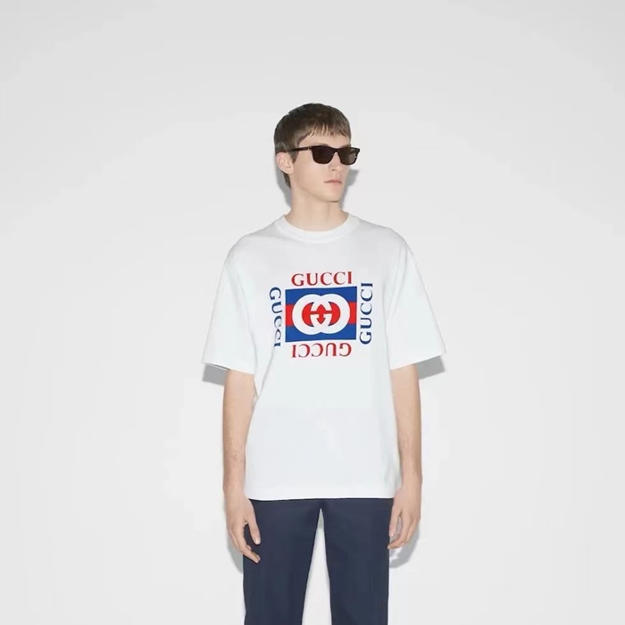 グッチメンズホワイト半袖Tシャツc344