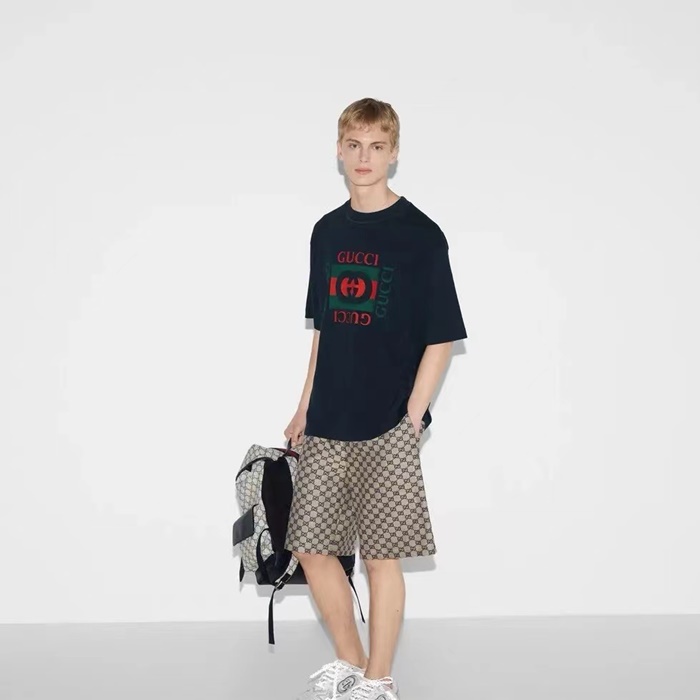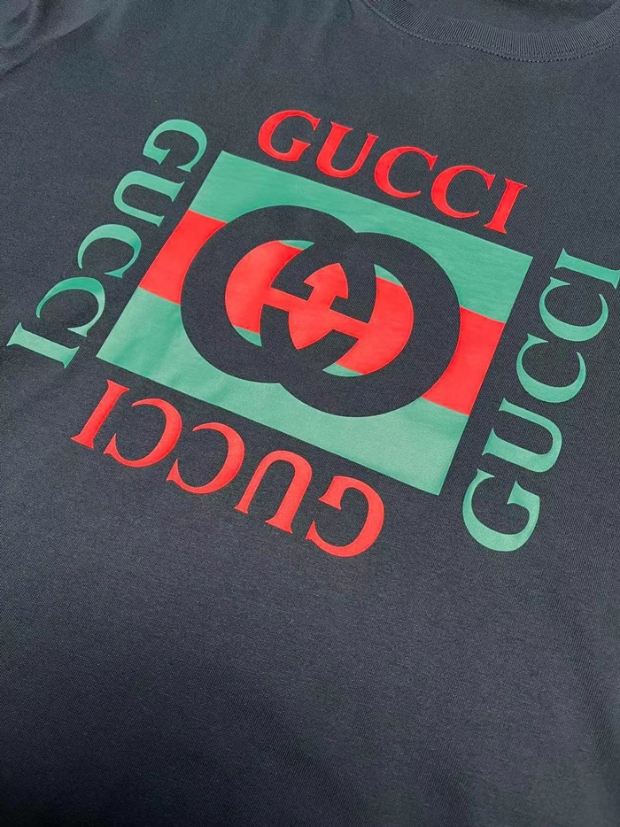 グッチメンズブラック半袖Tシャツc345