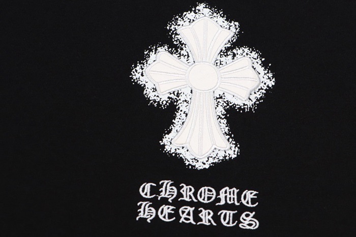 クロムハーツメンズブラック半袖Tシャツc649