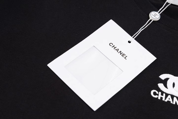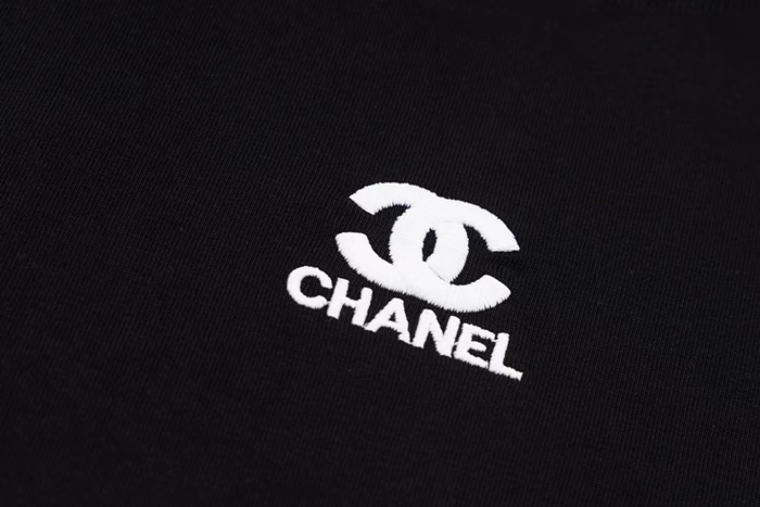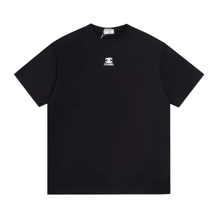 シャネルユニセックスブラック半袖Tシャツc556