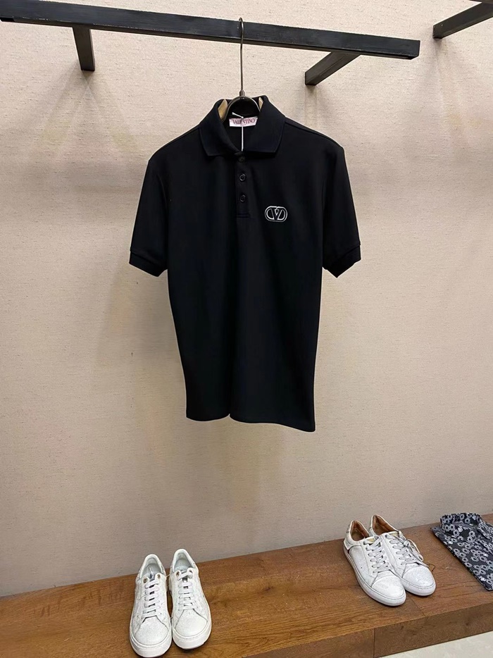 ヴァレンティノメンズブラックポロ半袖Tシャツc02