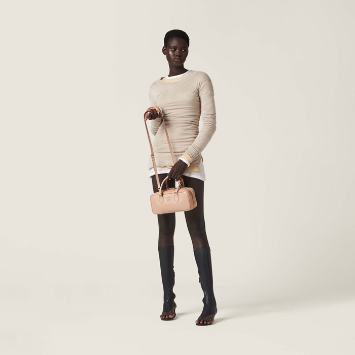 ミュウミュウレディースヌードベージュアルカディボウリングバッグb1987