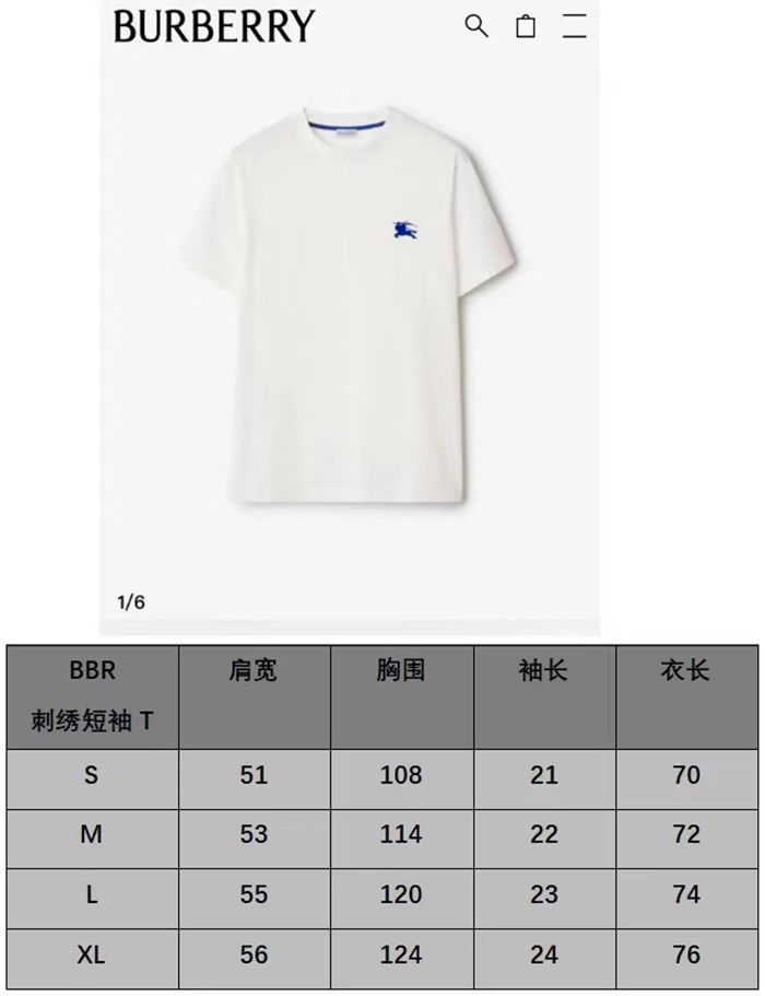 バーバリーメンズホワイト半袖Tシャツc337