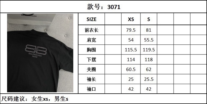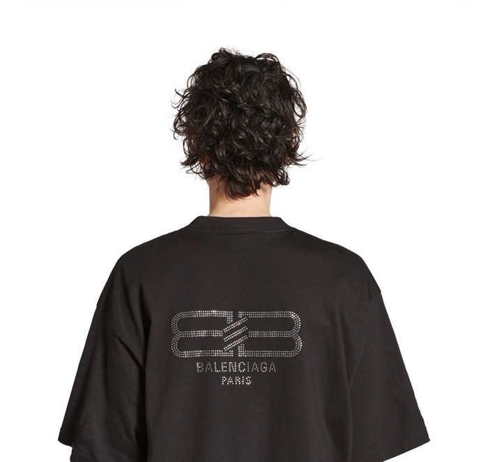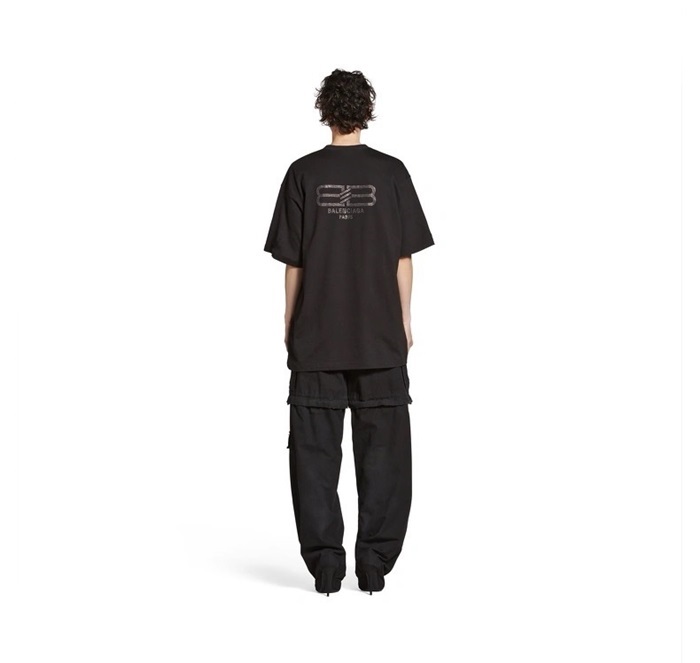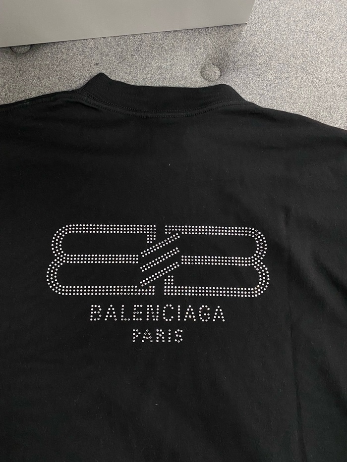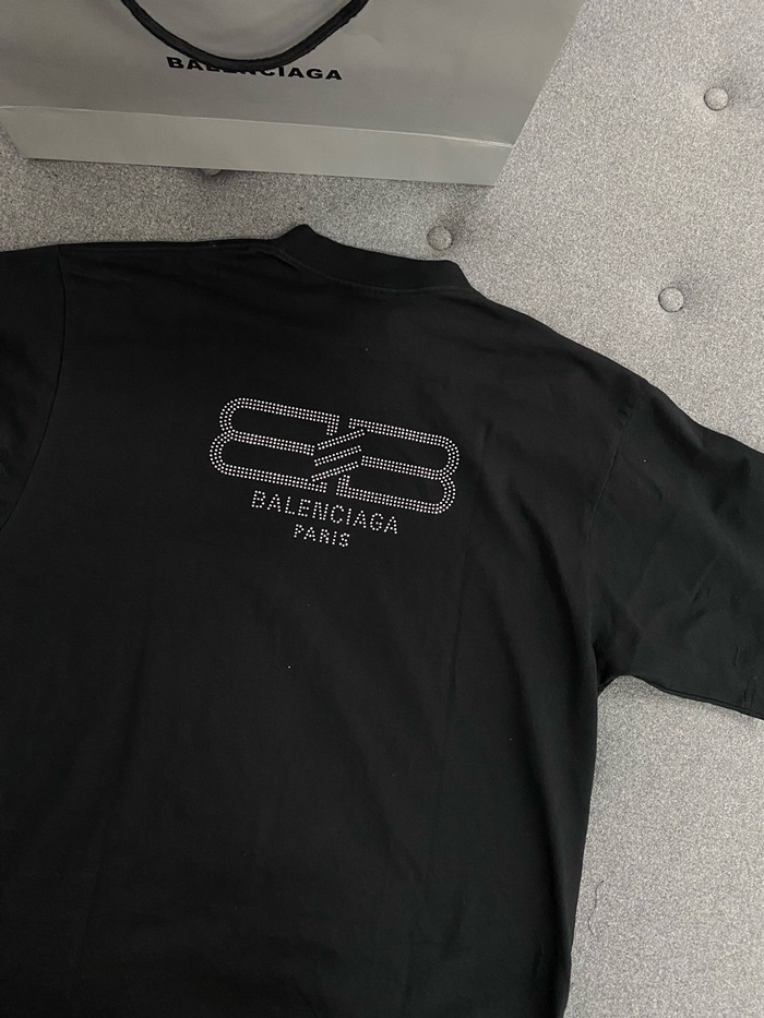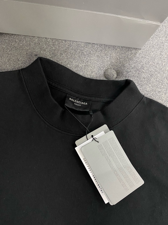バレンシアガユニセックスブラック半袖Tシャツc892