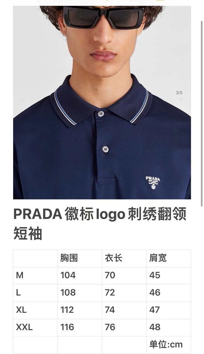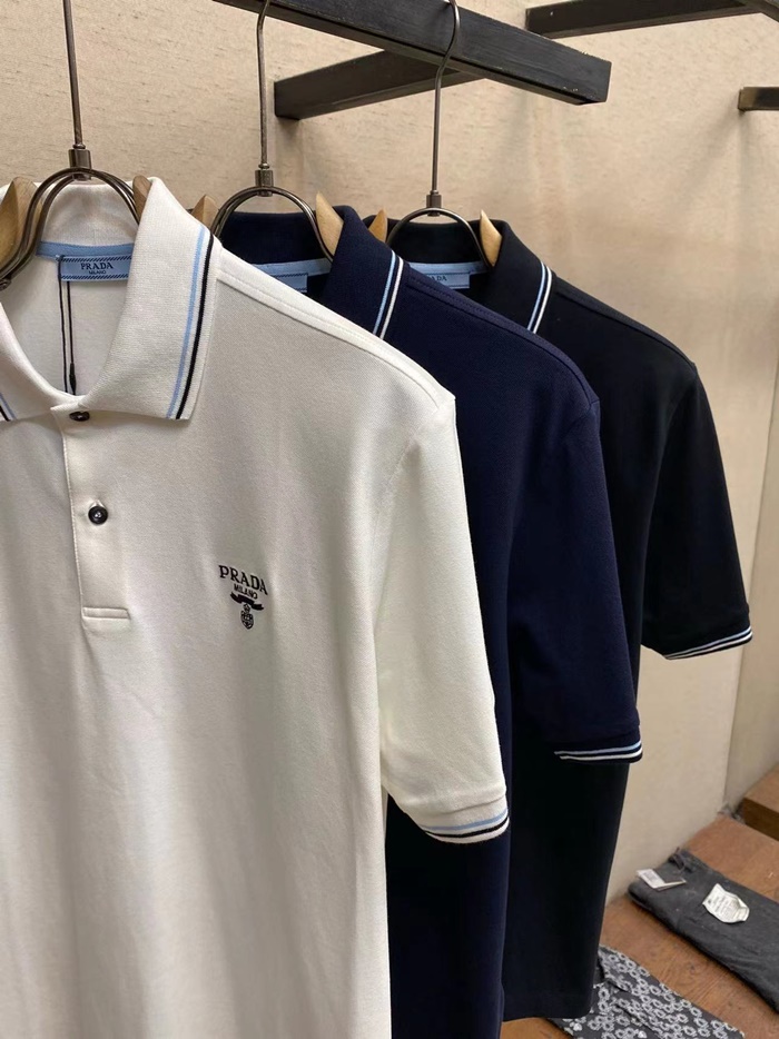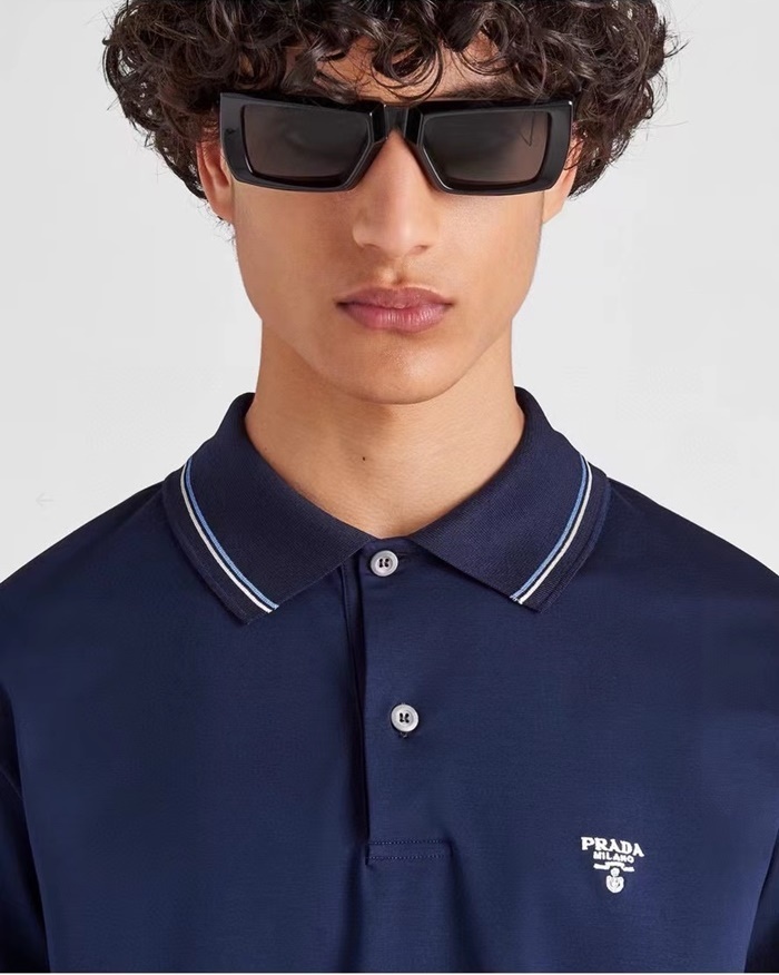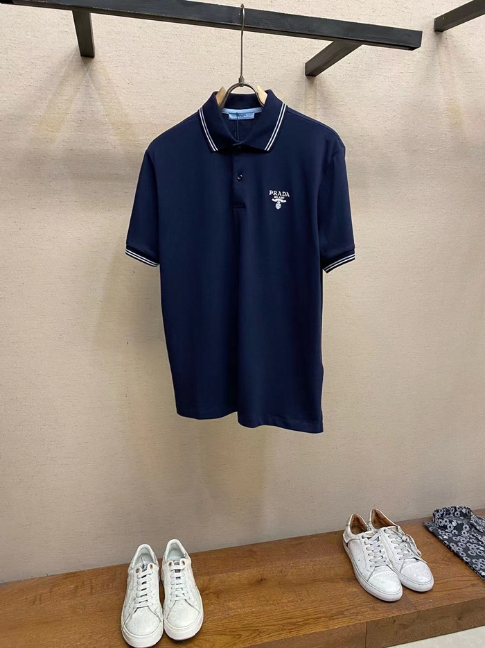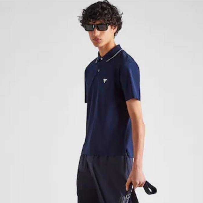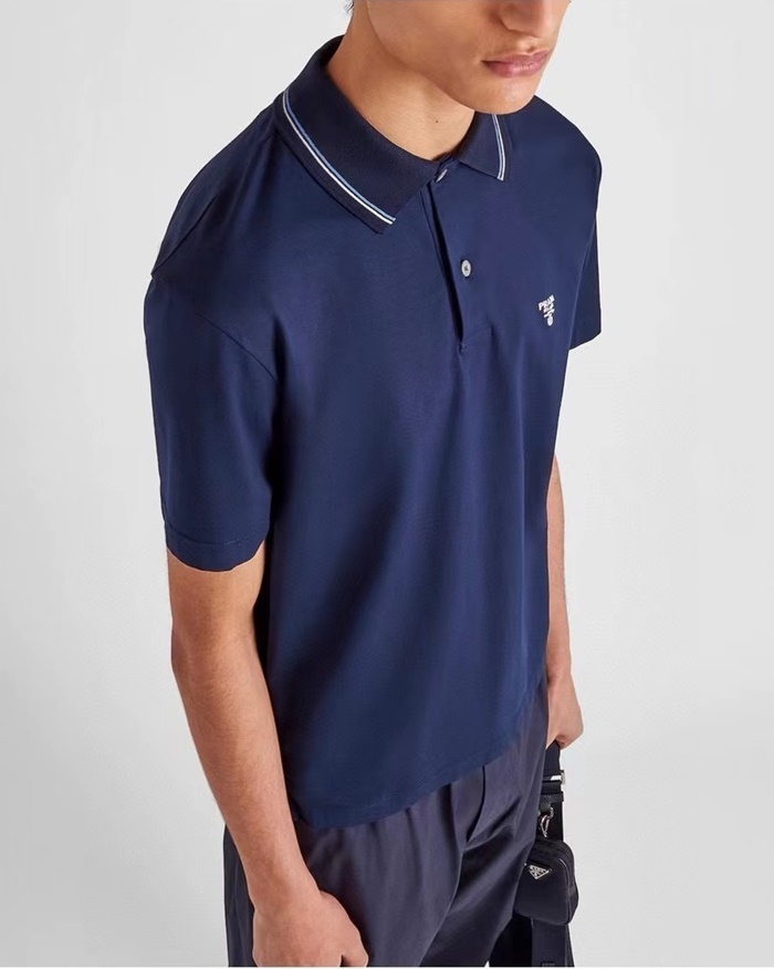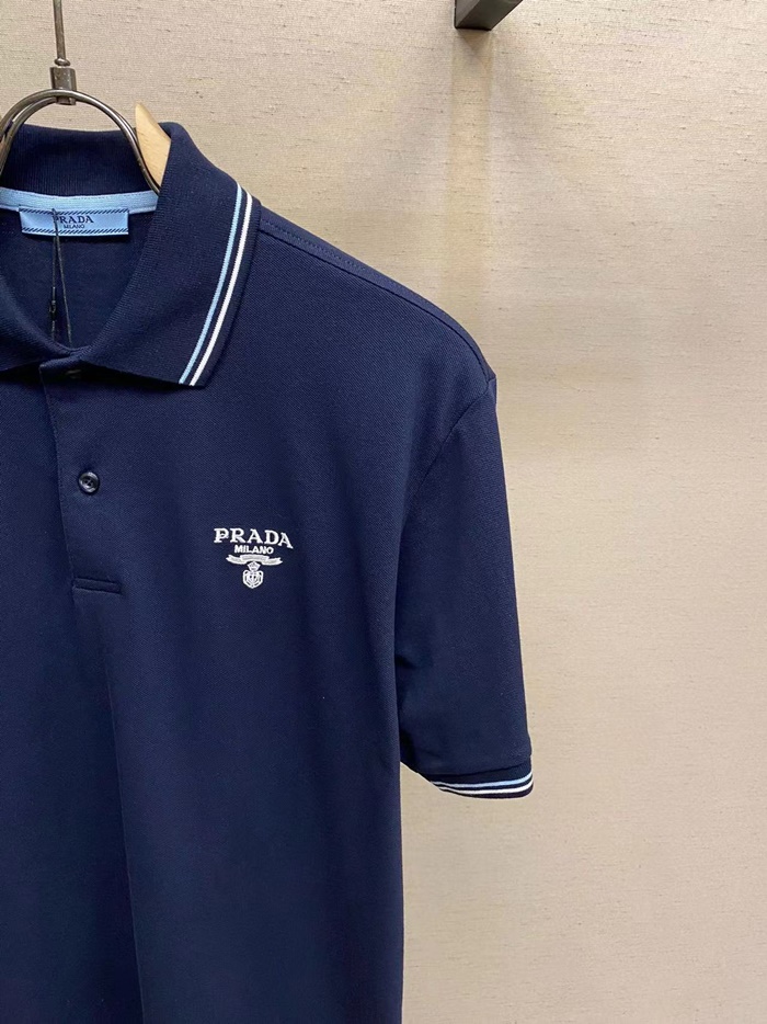 プラダメンズネイビーポロ半袖Tシャツc874
