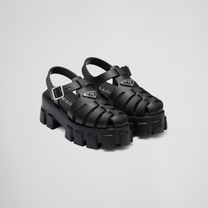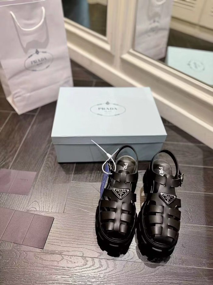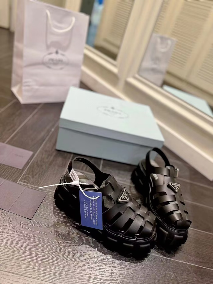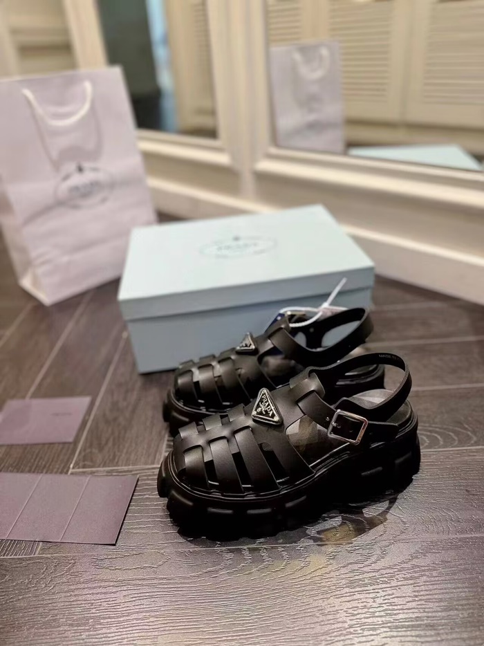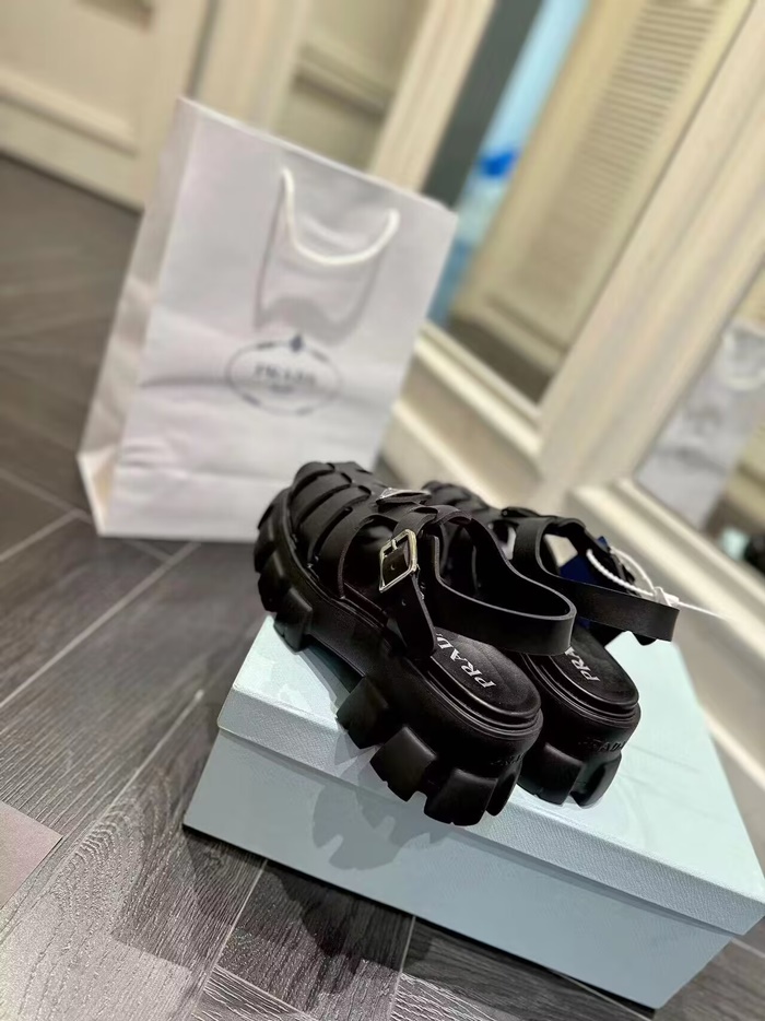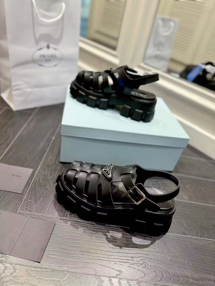 プラダレディースブラックルバーモノリスサンダルs661