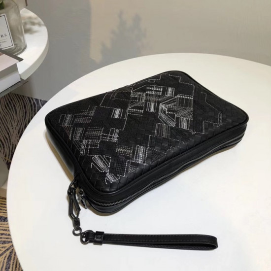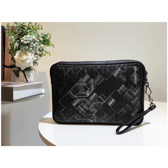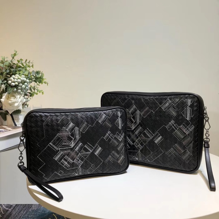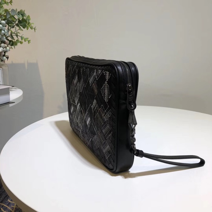 ボッテガヴェネタイントレチャートレザーブラックメンズハンドバッグ98004,B0102/35