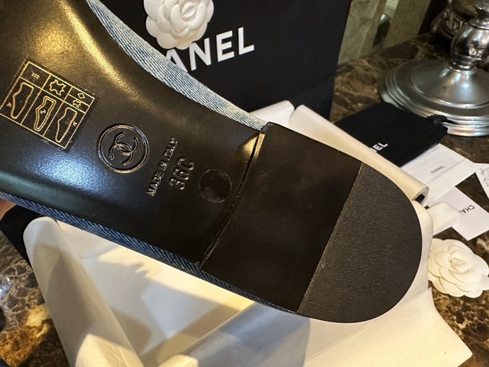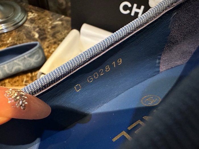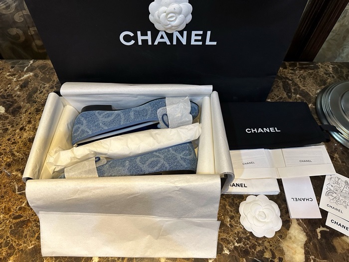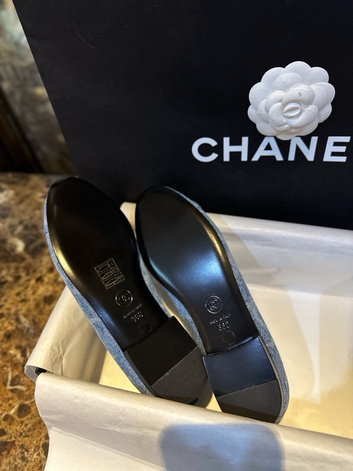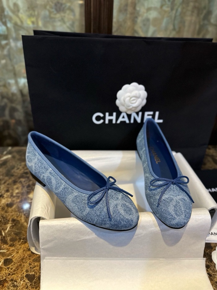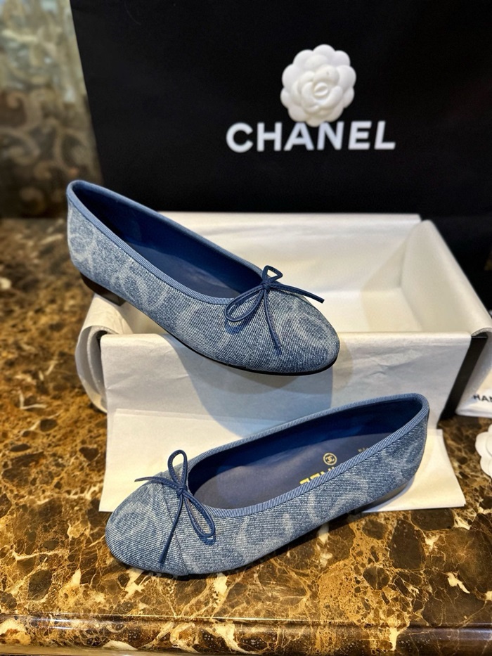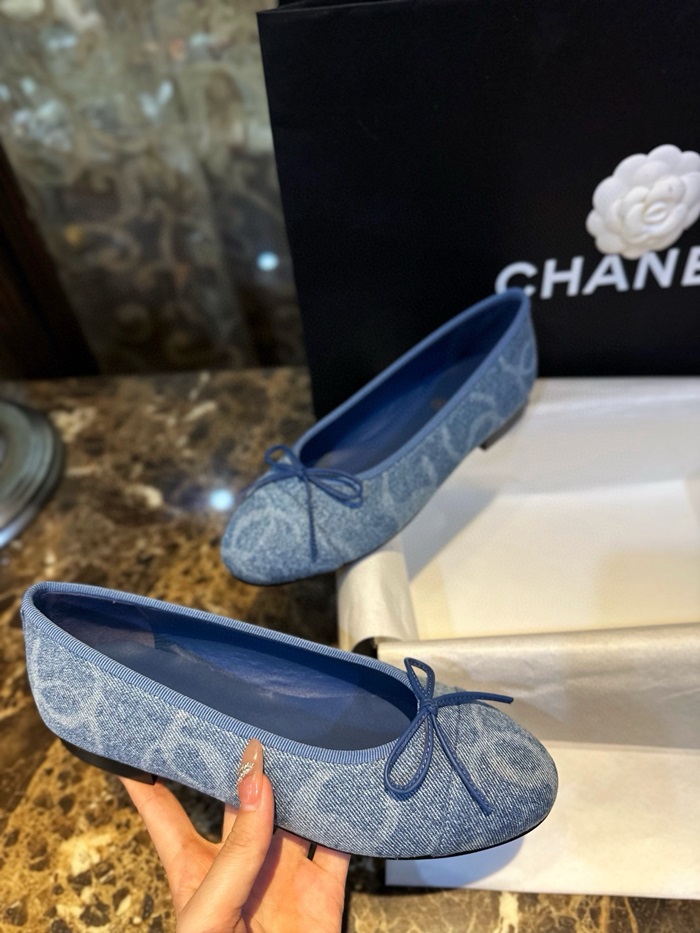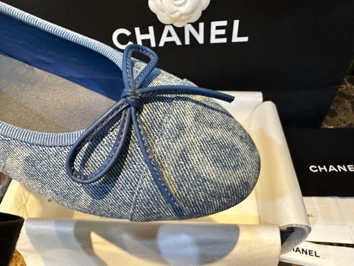 シャネルレディースブルーバレリーナフラットs991
