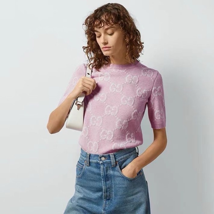 グッチレディースピンク半袖Tシャツc980